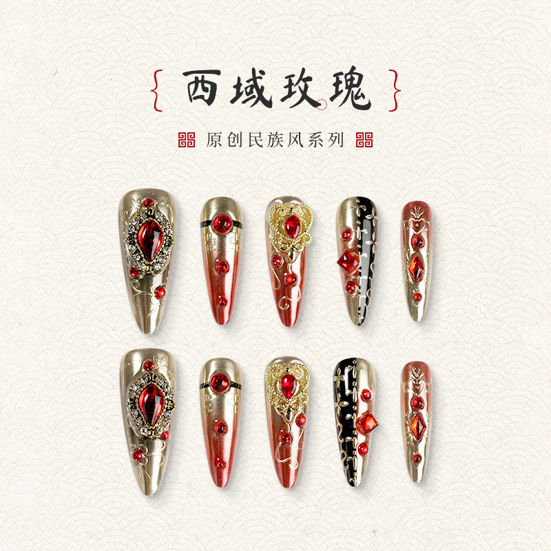 【西域玫瑰】秀禾款重工民族风婚礼新娘美甲显白高级感手工穿戴甲