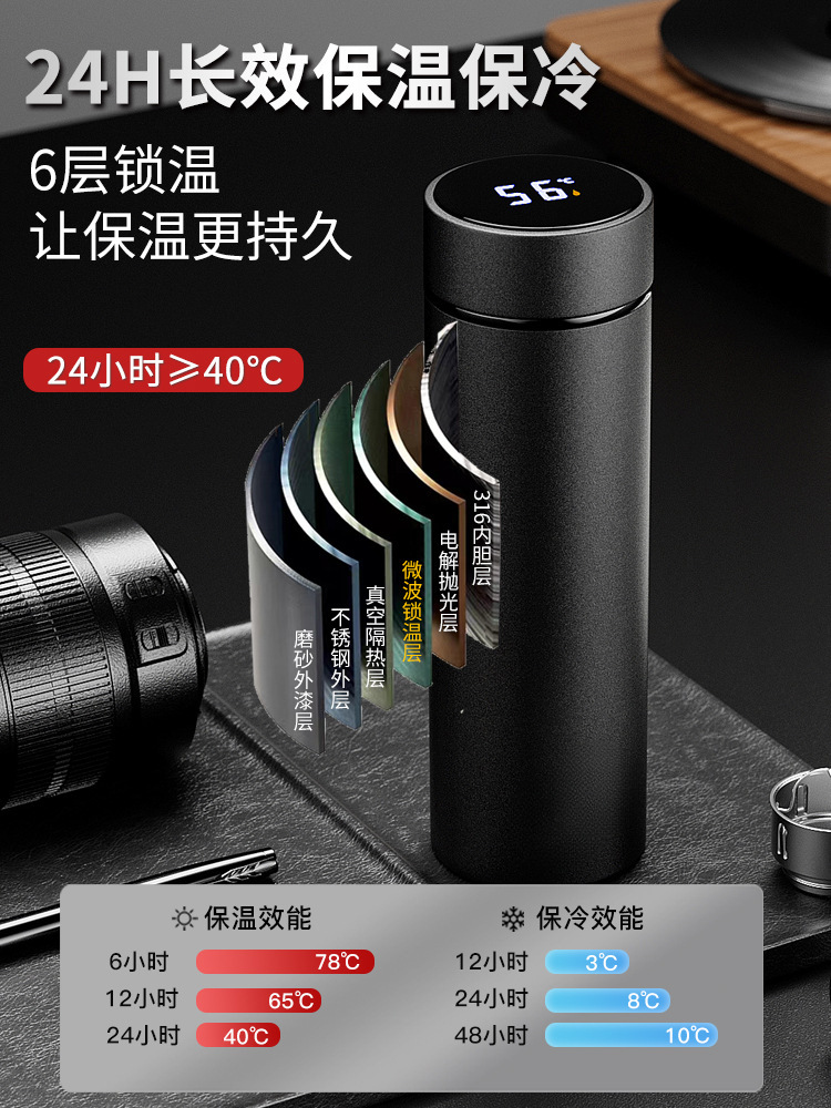 | 颜色 | 【茶水分离+316不锈钢】智能显温-黑色480ML | 颜色 | 【316不锈钢+喝水杯盖】机械显温+商务黑色500ML |