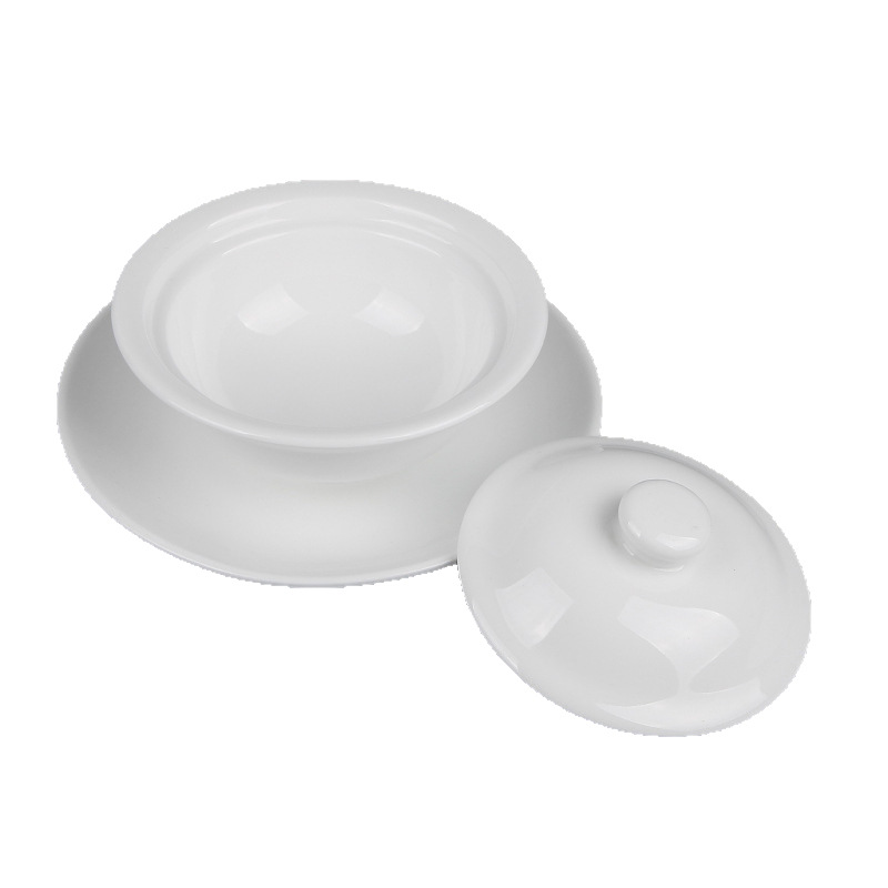 批发酒店后厨陶瓷 高脚燕窝盅三件套 陶瓷盅配底碟 鱼翅盅