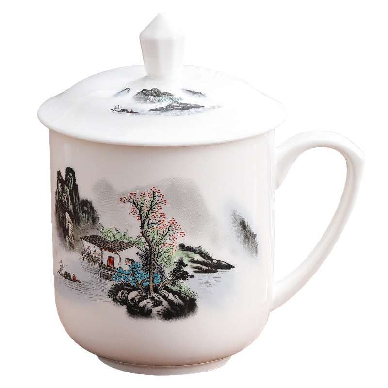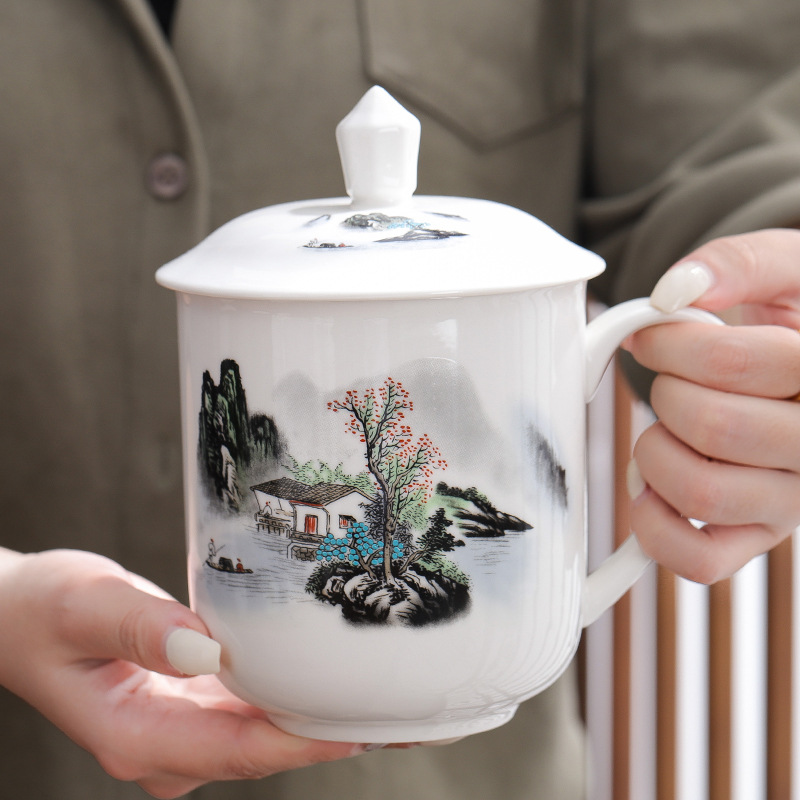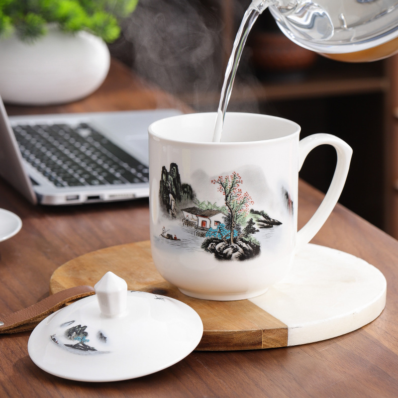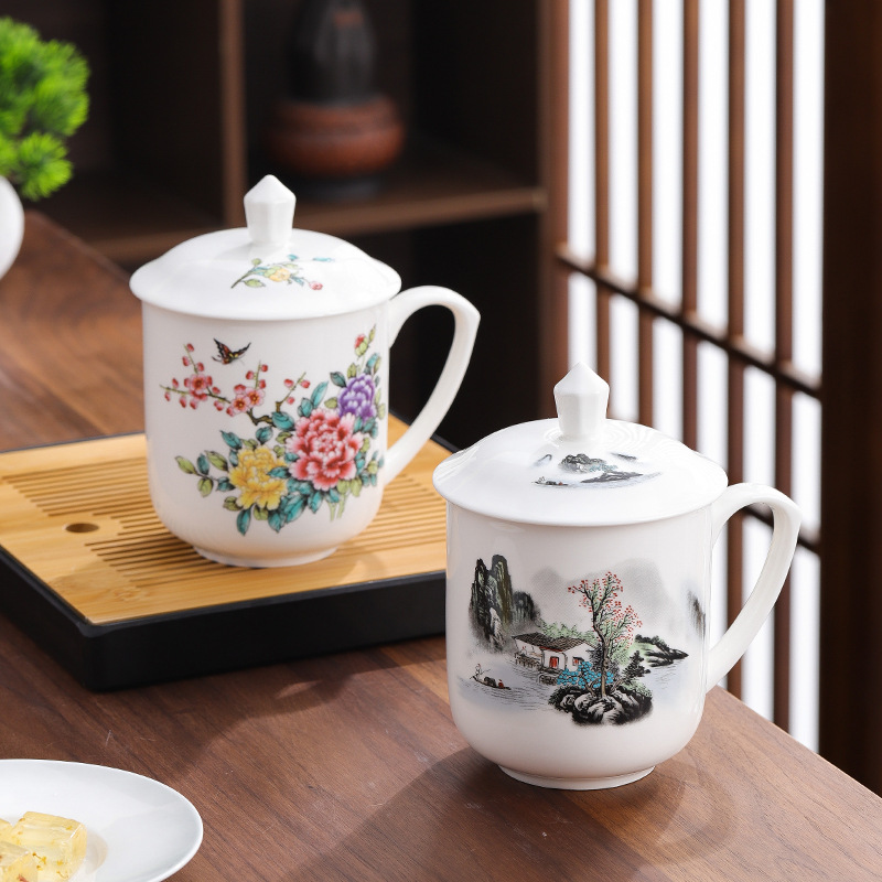 景德镇陶瓷茶杯大容量900ML办公室会议杯带盖礼品杯套装家用水杯