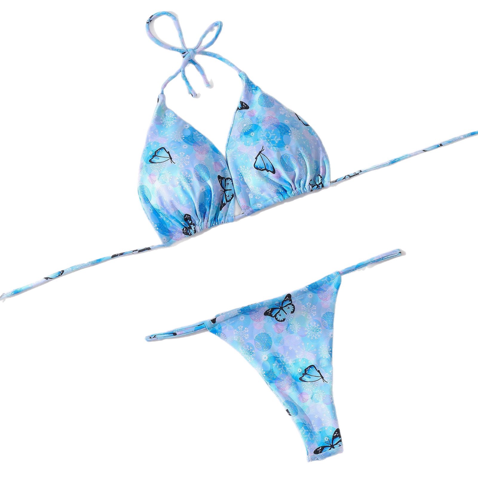 2025跨境蝴蝶印花比基尼胸垫聚拢性感分体泳衣绑带可调节泳装厂家