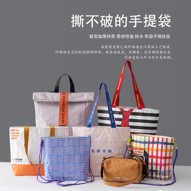 杜邦纸袋定制logo撕不烂可水洗托特包文创揉纹复古文艺购物手提袋
