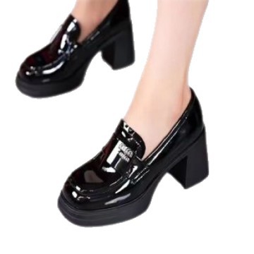 跨境一脚蹬乐福鞋女粗跟高跟鞋2025春秋新款百搭时尚懒人鞋单鞋女