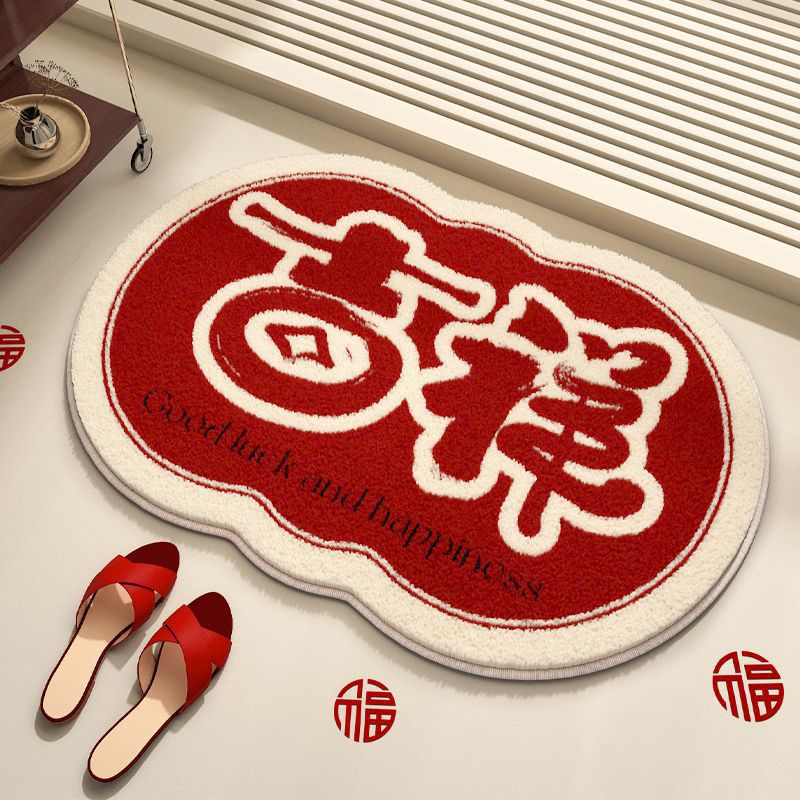 新款红色新年仿羊绒地垫吸水耐脏脚垫异形卧室客厅地毯入户门脚垫