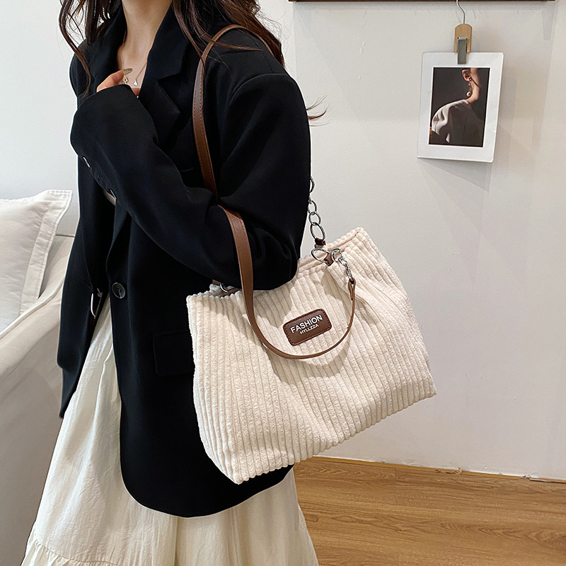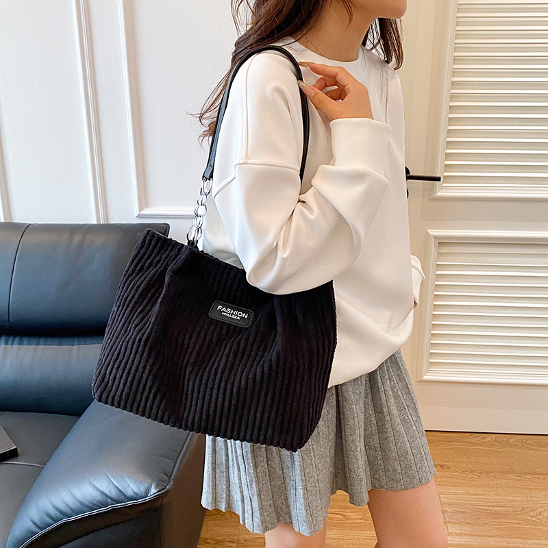 潮流单肩托特包女包2025新款秋季通勤包大容量条绒链条腋下包