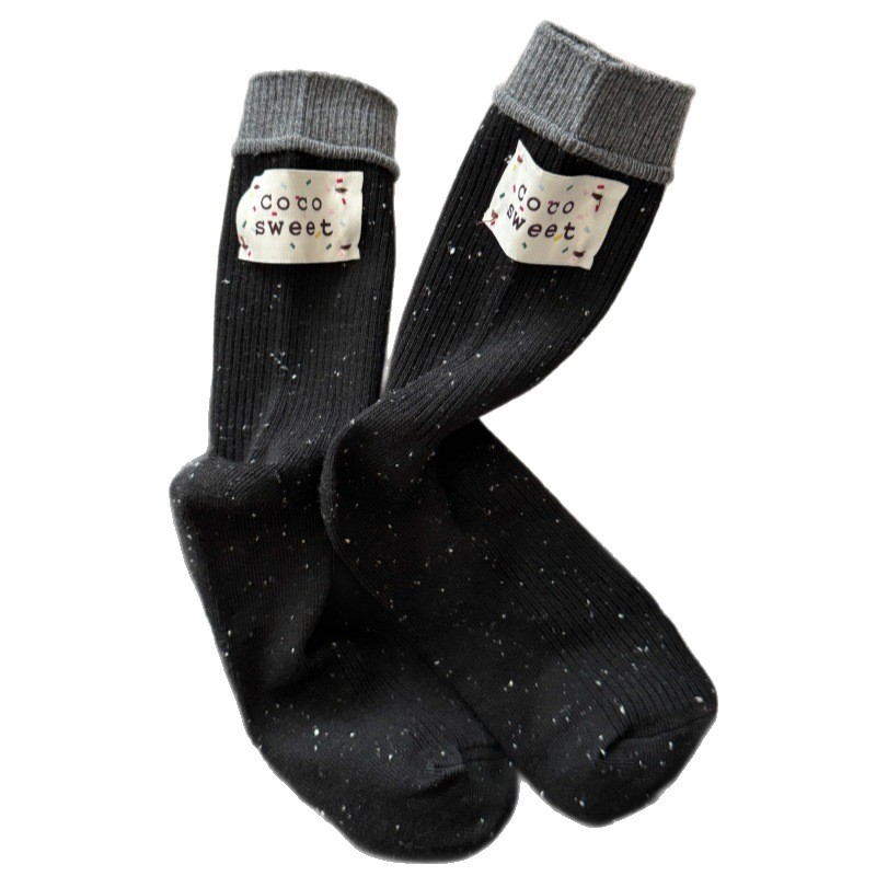 秋季新品双针女袜日系撞色布标中筒袜ins女潮袜复古风点子纱女袜