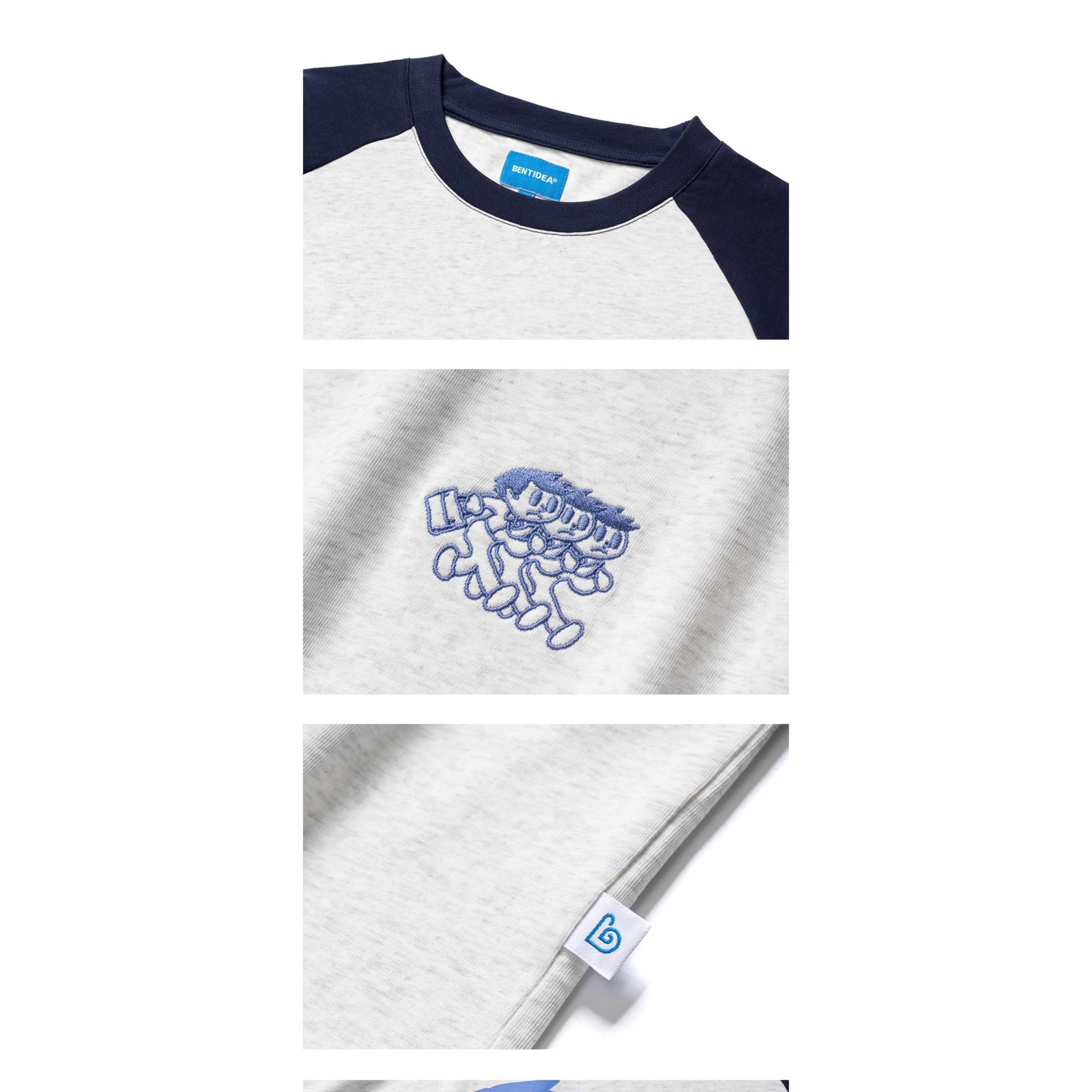 服装定制厂家 秋季新款潮流卡通人物印花拼色插肩男女纯棉T恤长袖