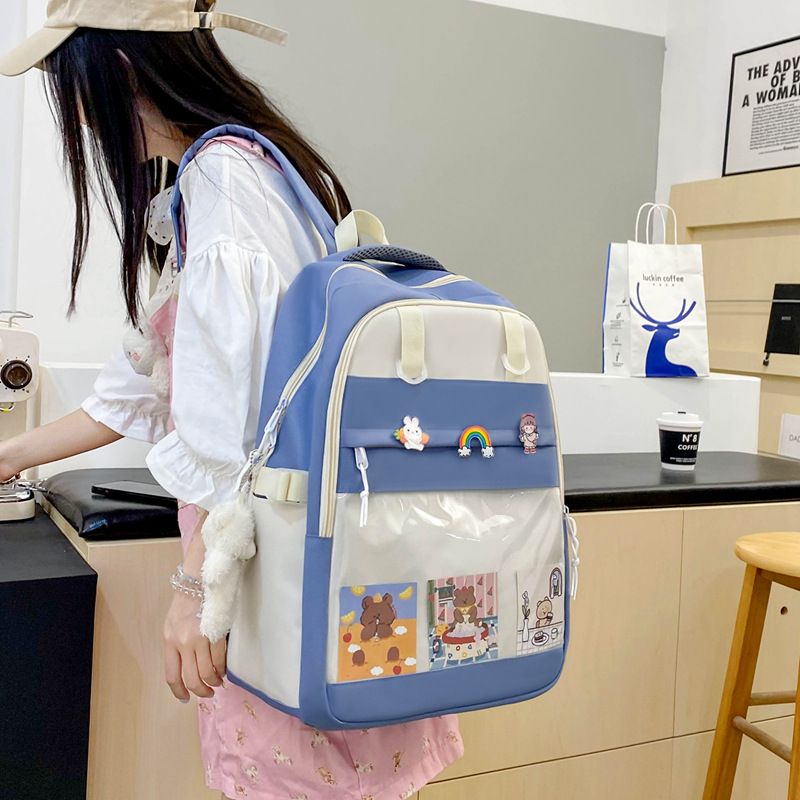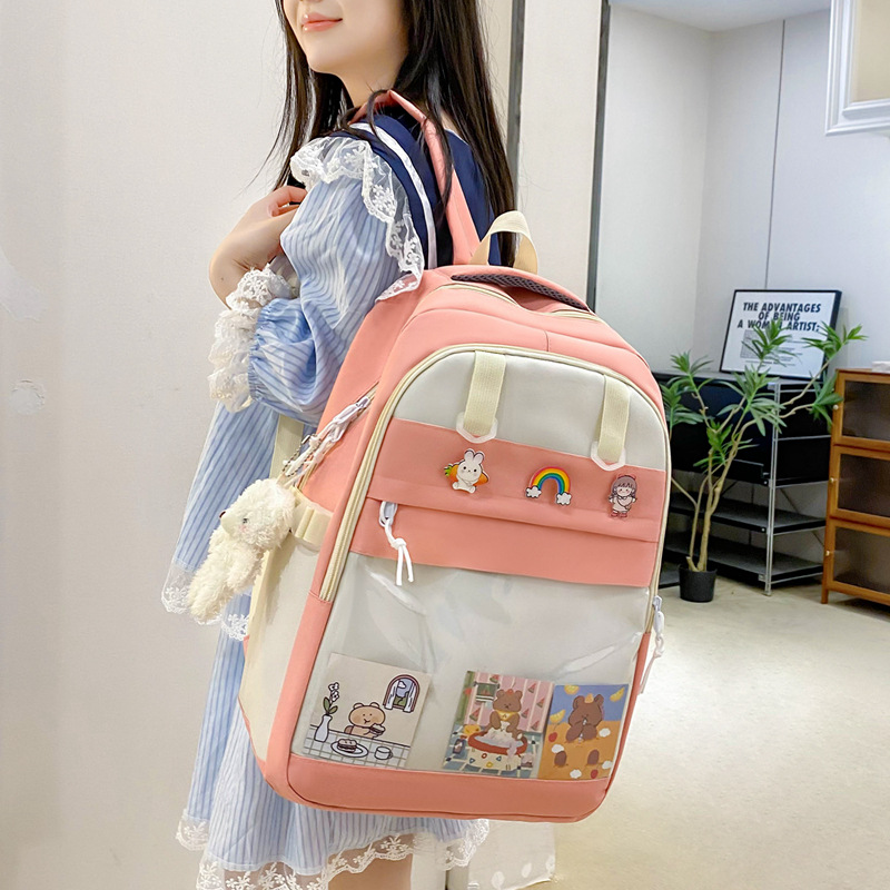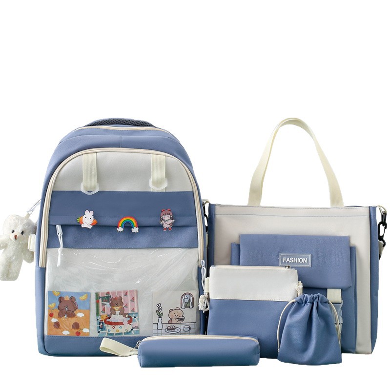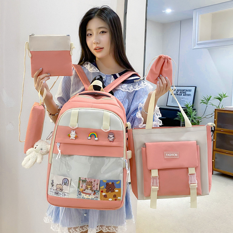 跨境大容量书包四件套新款轻便撞色双肩包中学生耐磨手提补课袋