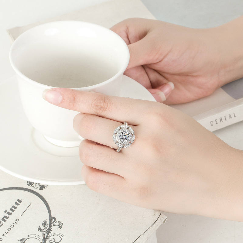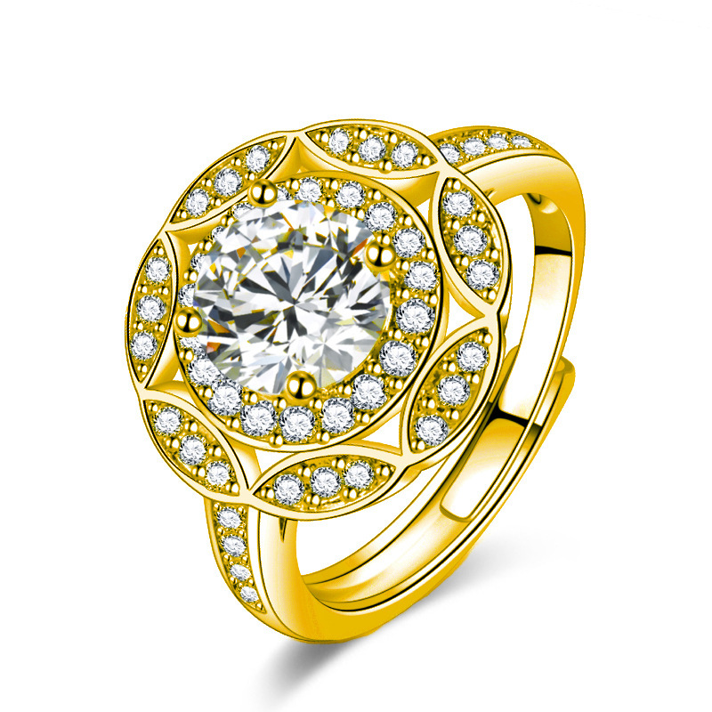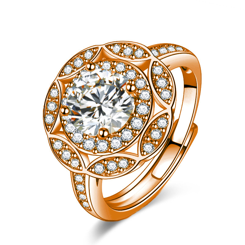 凯恒时尚国潮民族风花卉戒指 繁花大花朵镶钻戒指 花朵圆钻戒指环
