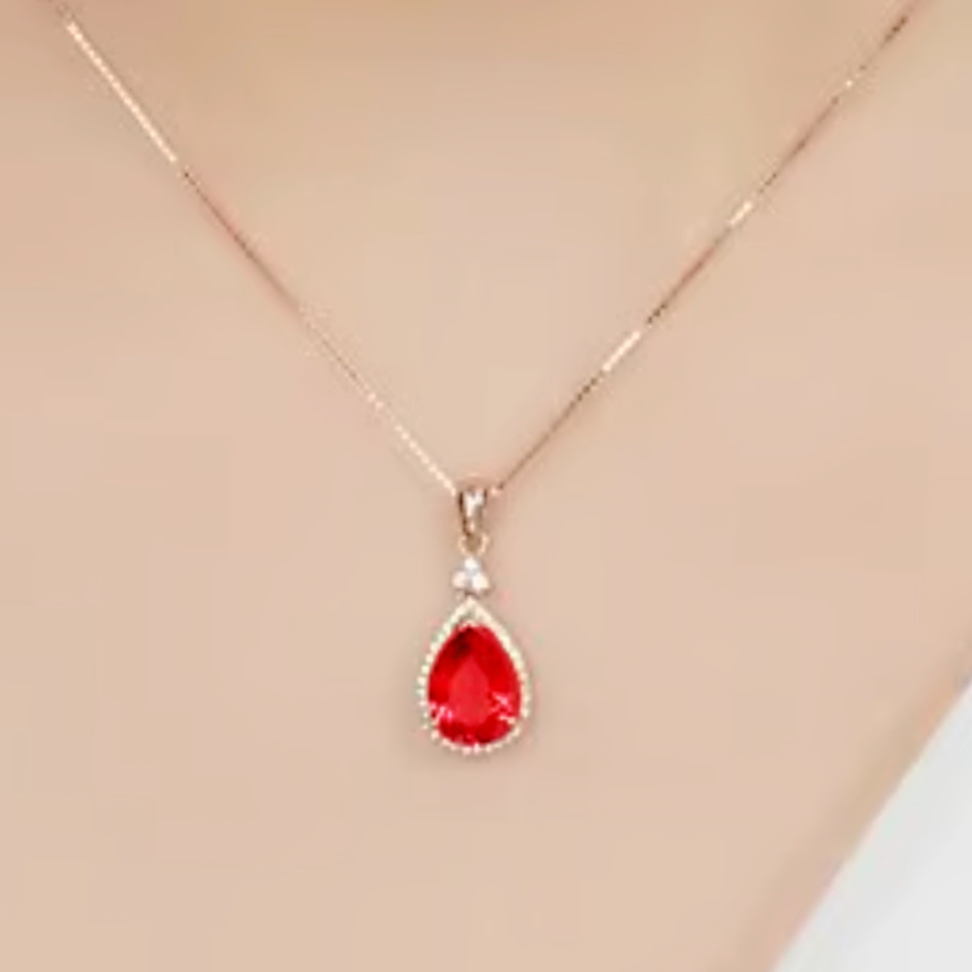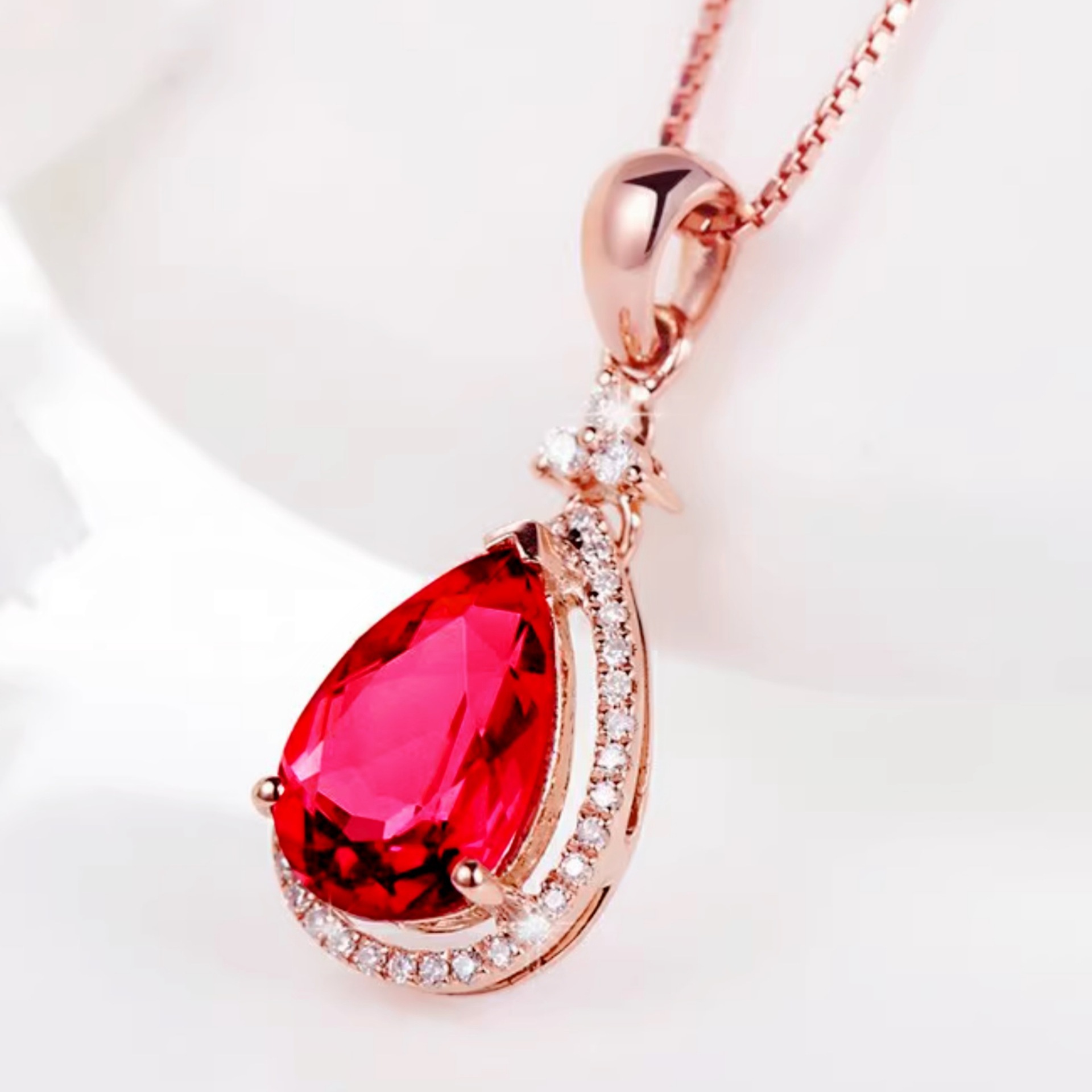 凯恒韩版红宝石水晶水滴形吊坠项链海洋之心红水晶吊坠锁骨链项链