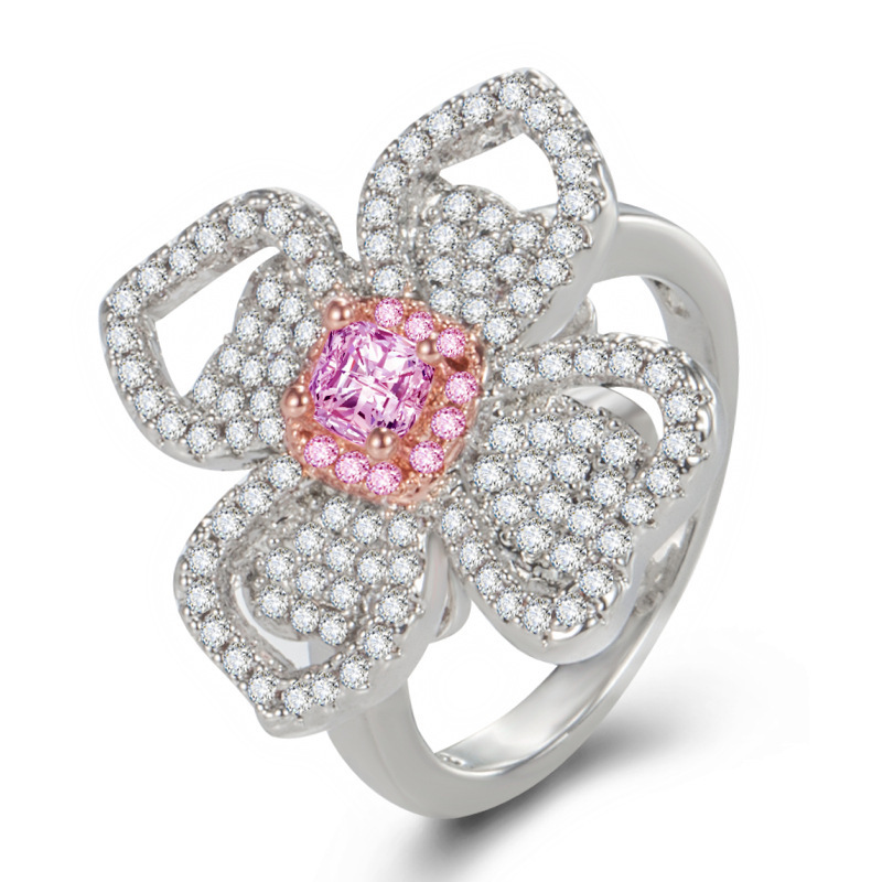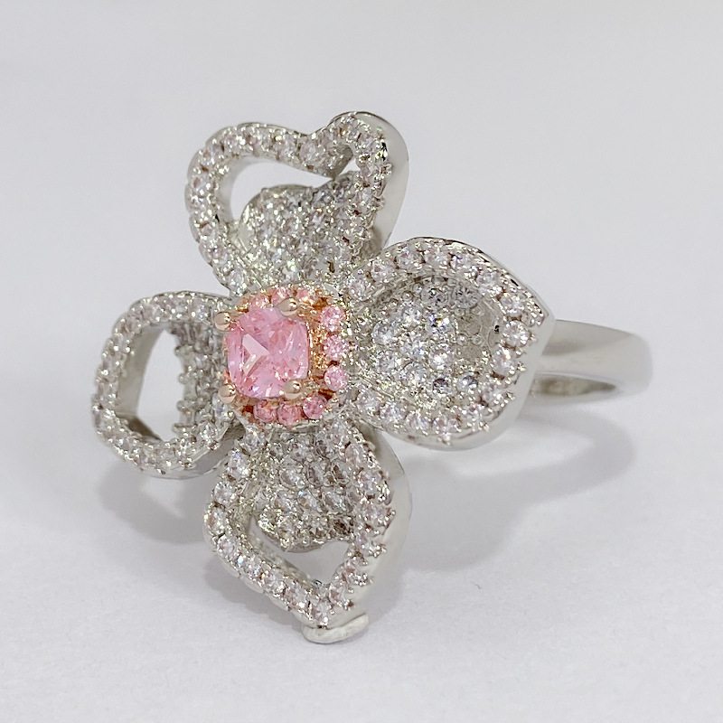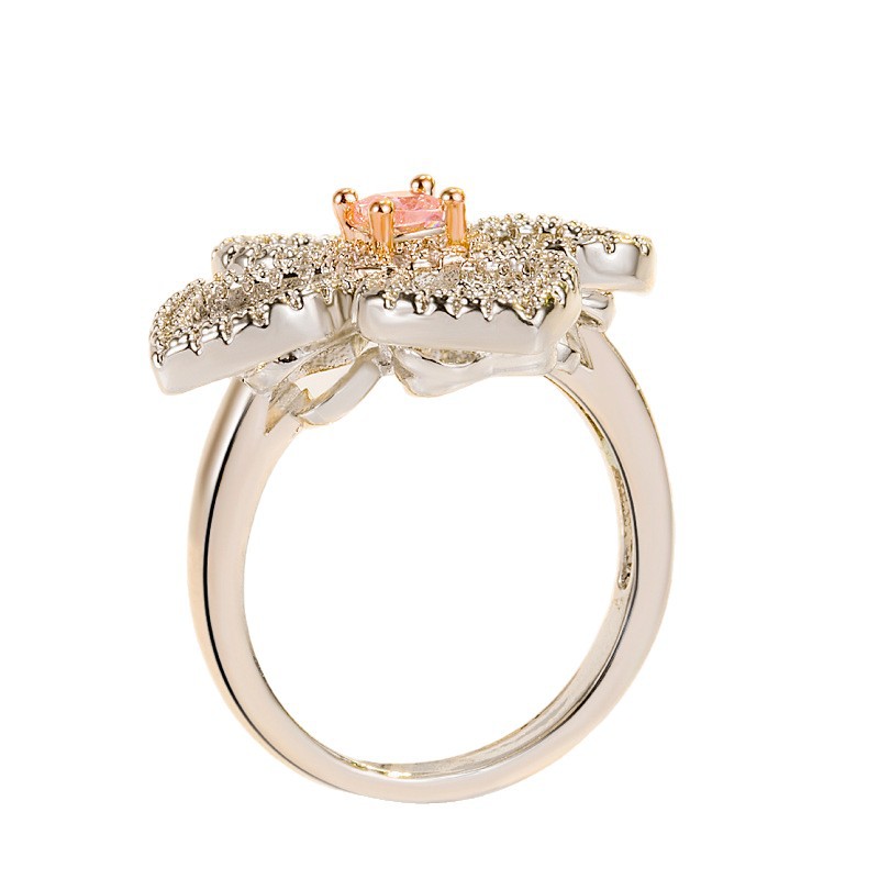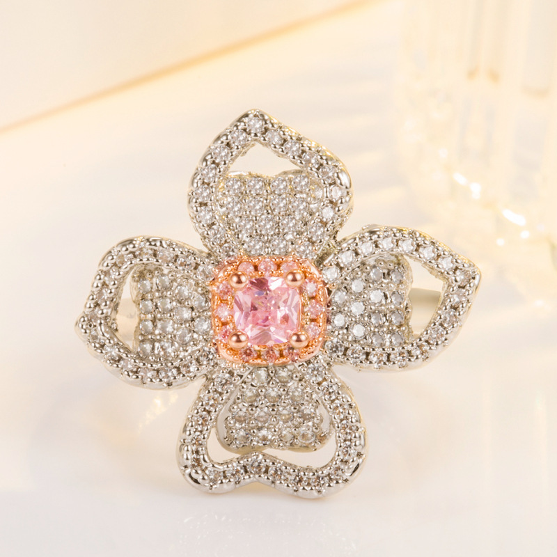 凯恒外贸大胆张扬爱心花朵满钻戒指 奢华优雅时尚鸡尾酒婚戒钻戒