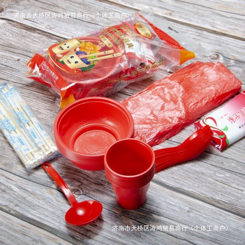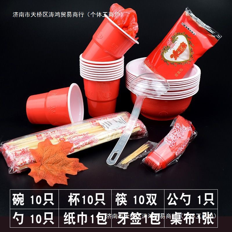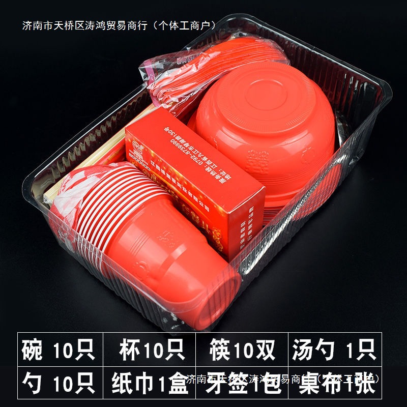 一次性碗筷餐具套装红色结婚宴席家用餐具组合碗杯10人份