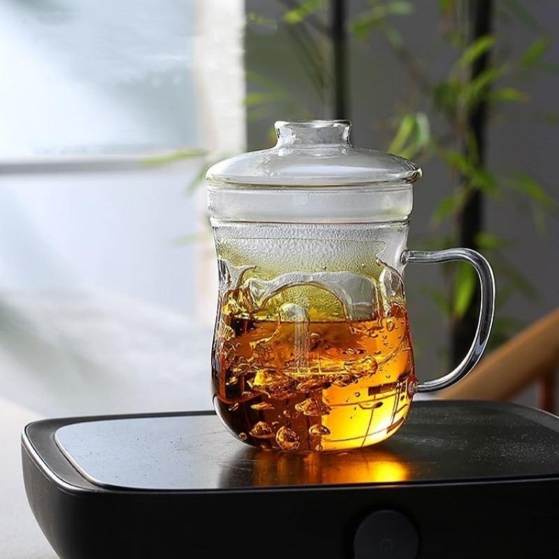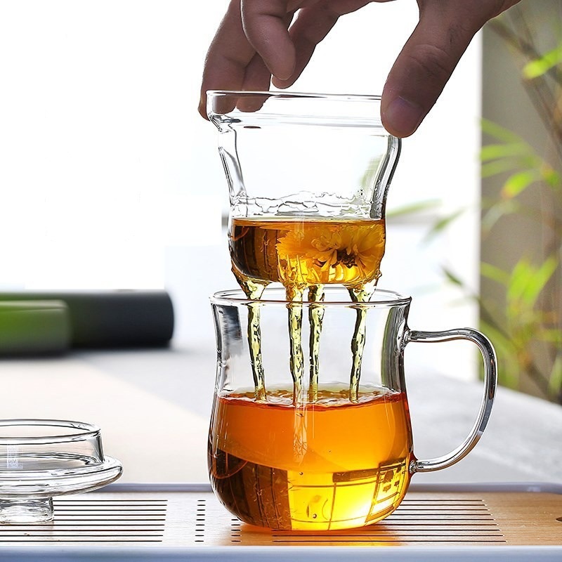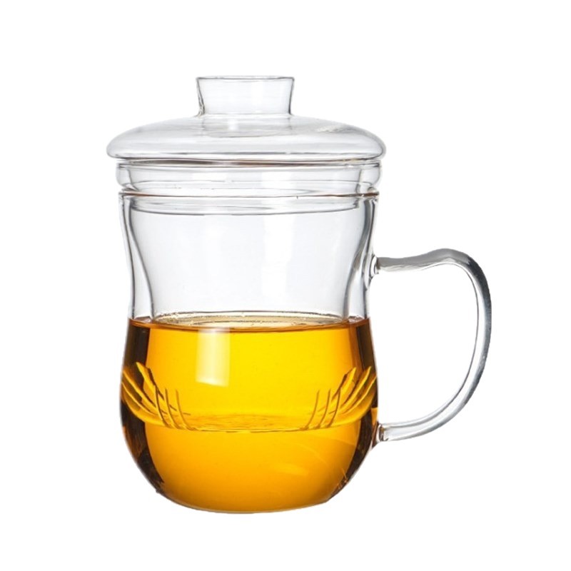 透明侧把手泡茶杯简约加厚办公室三件杯高硼硅玻璃耐热泡茶花茶杯