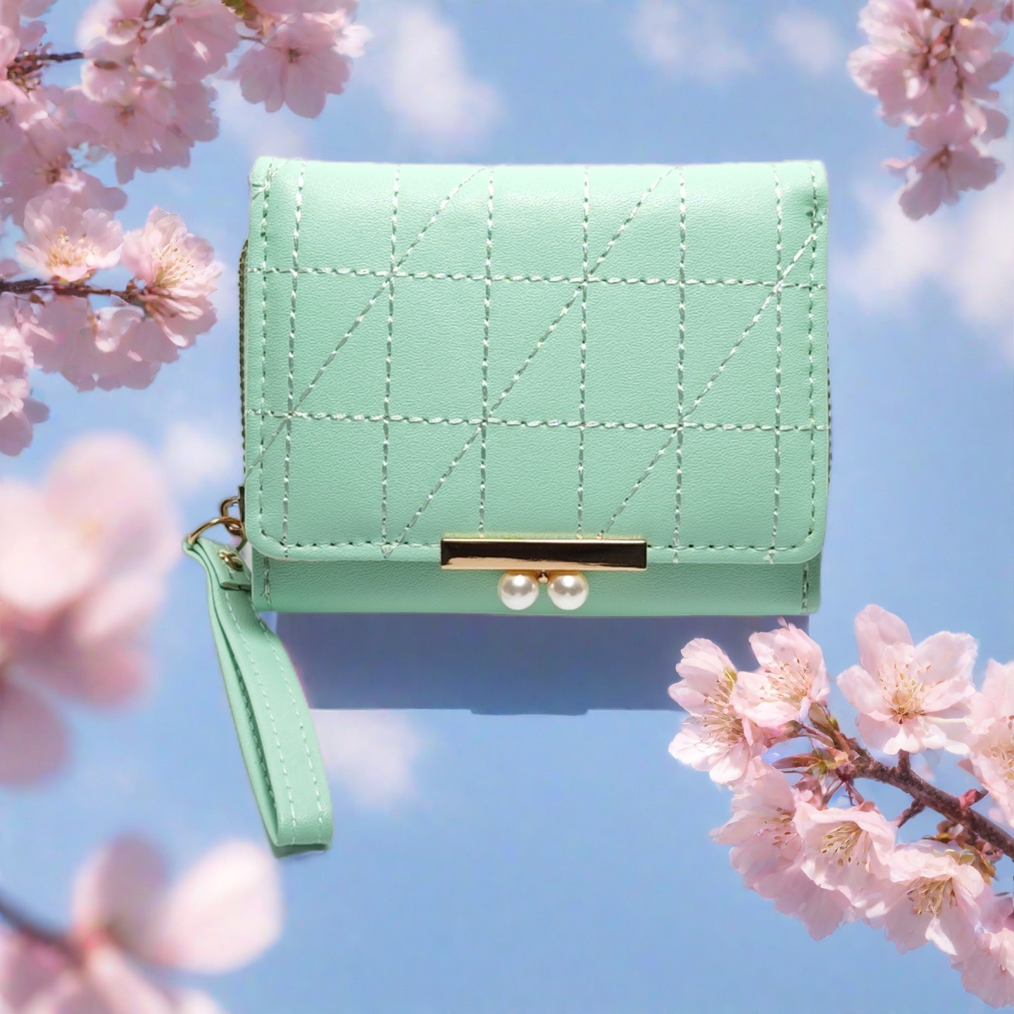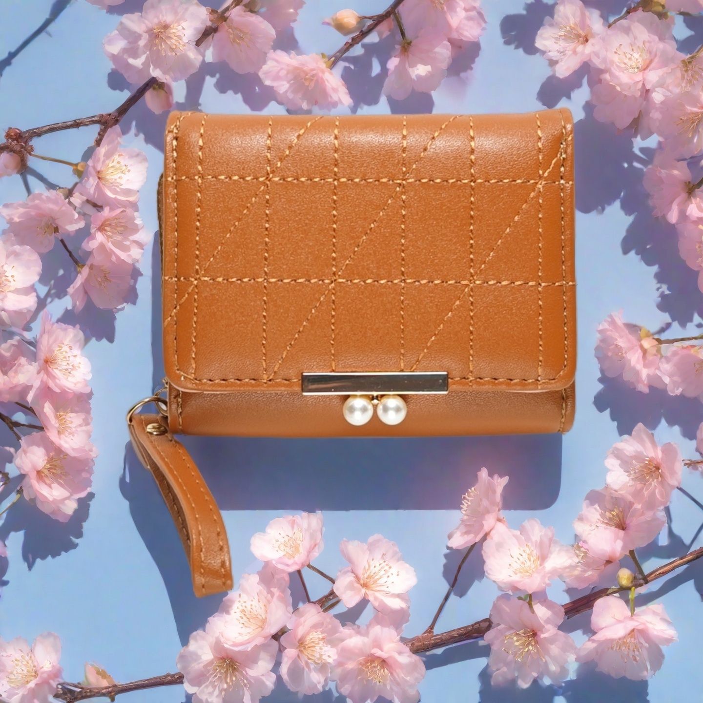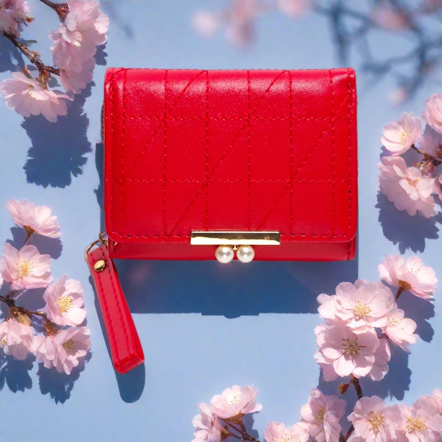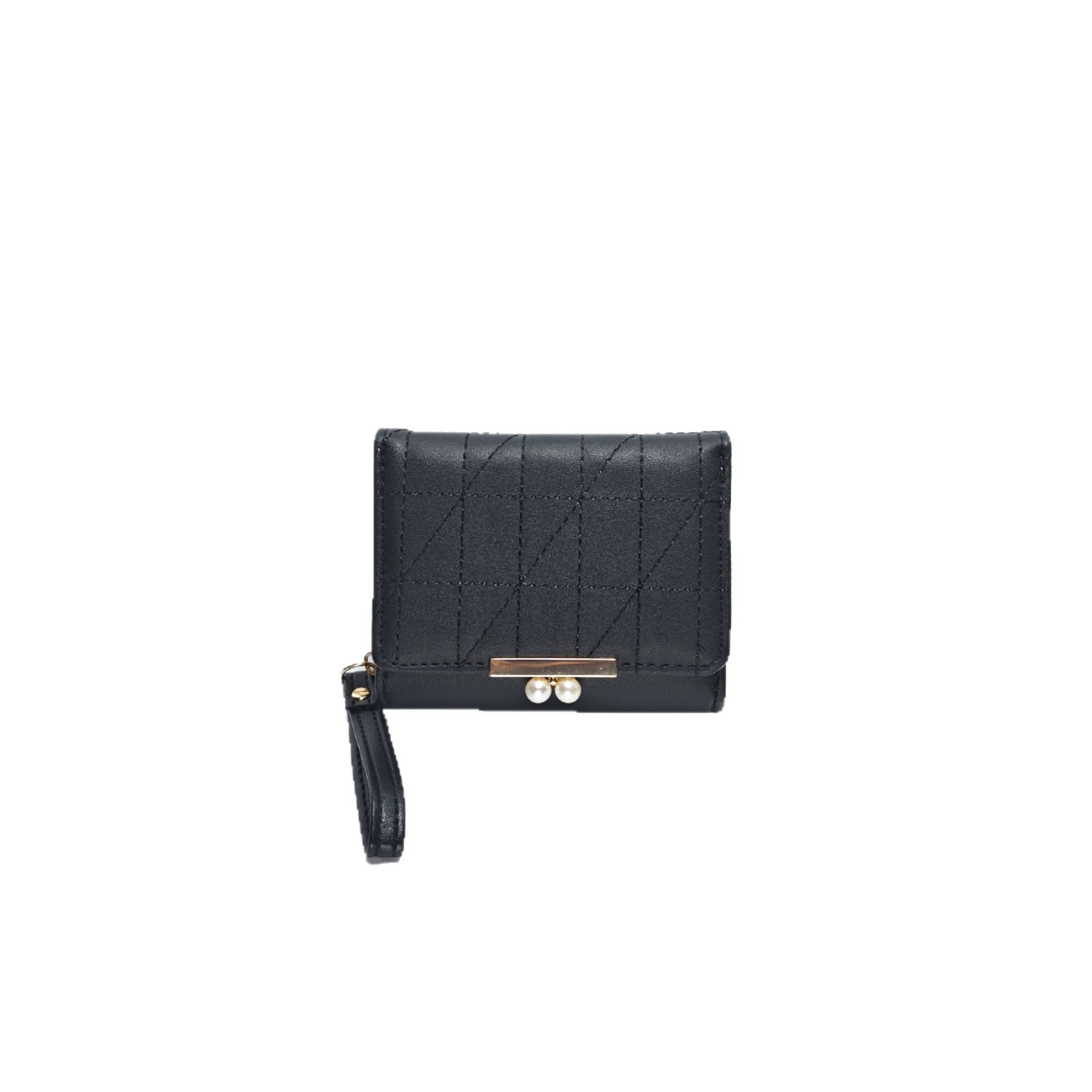 2025时尚新款法式珍珠小钱包女短款百搭折叠学生搭扣零钱包钱夹