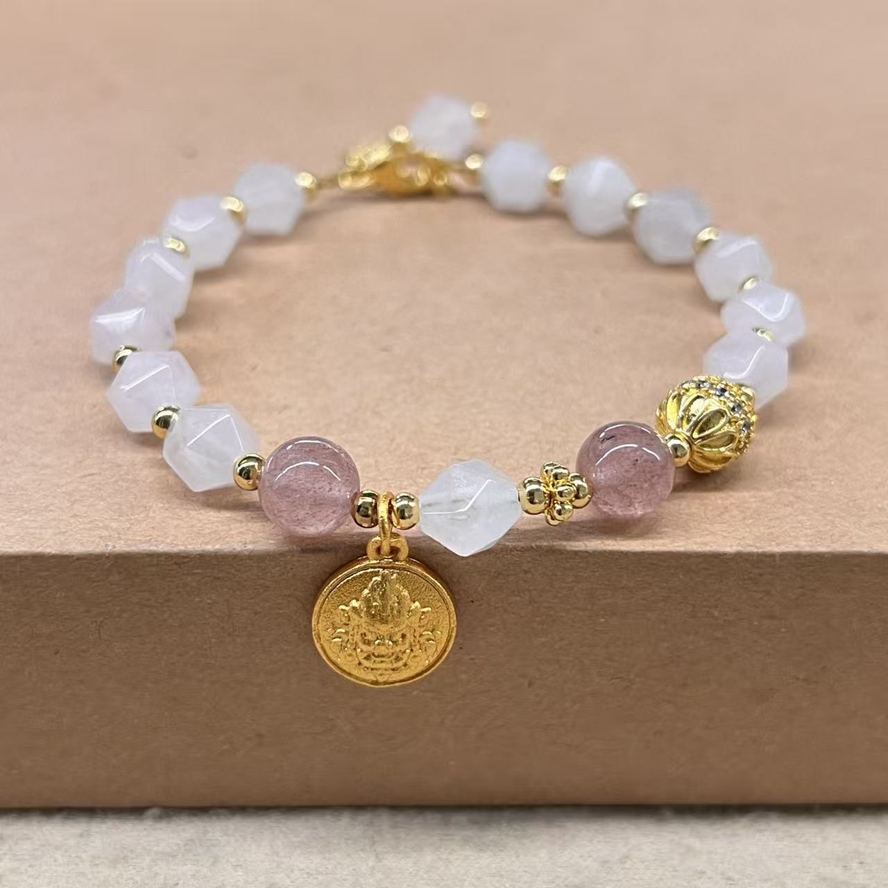 颜色 | 10mm虎眼石黄塔晶招财手串 | | 颜色 | 8mm粉晶草莓晶招财桃花手链 |