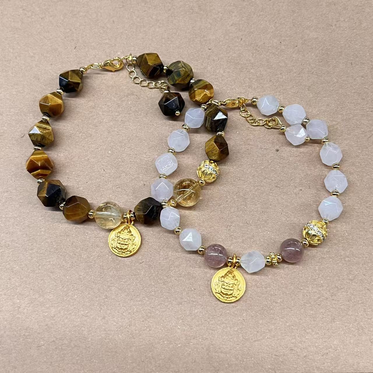 普陀山财星高照虎眼石手串男黄水晶粉晶手链女新中式情侣招财手饰