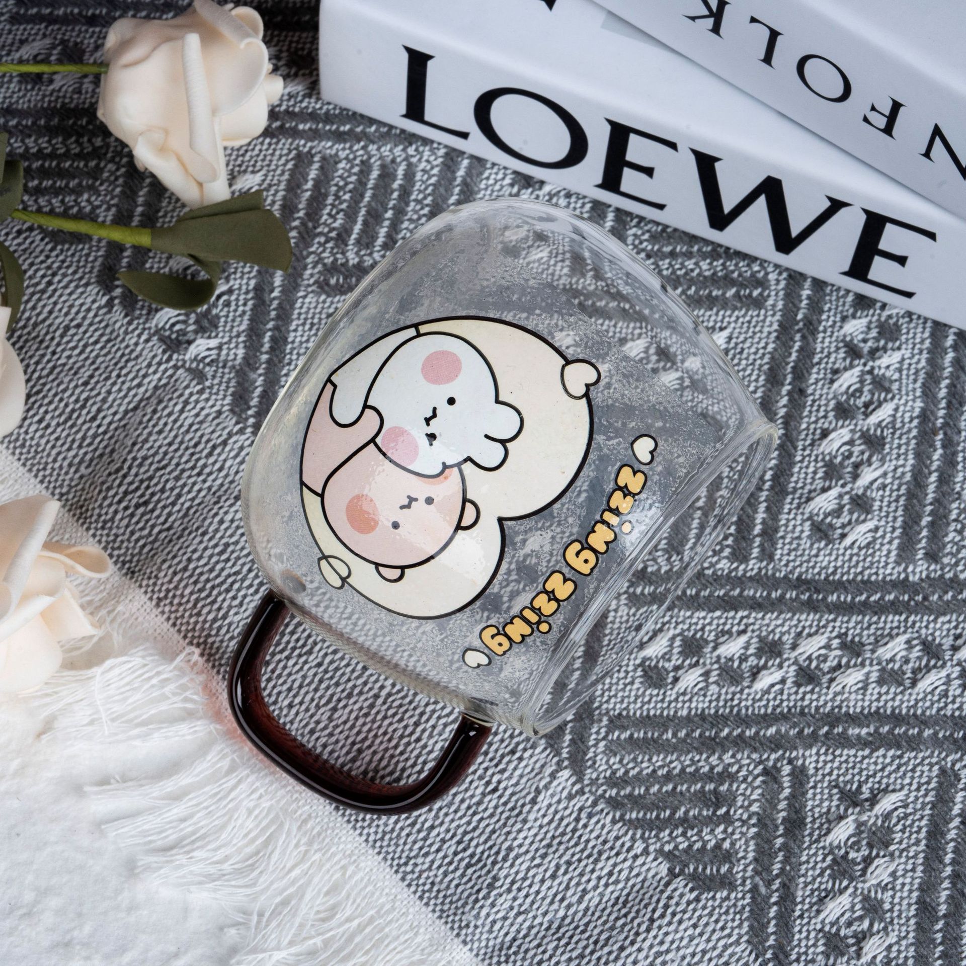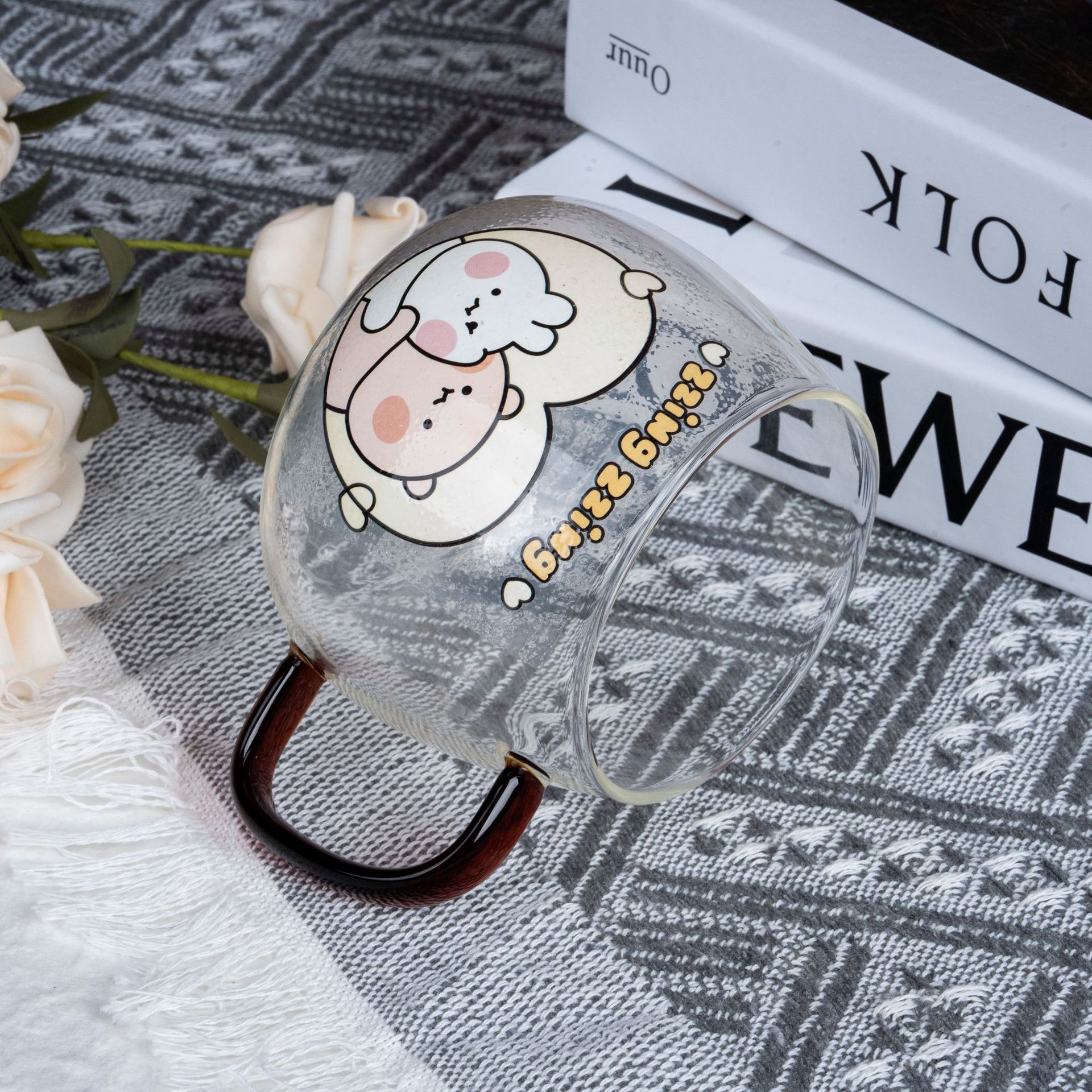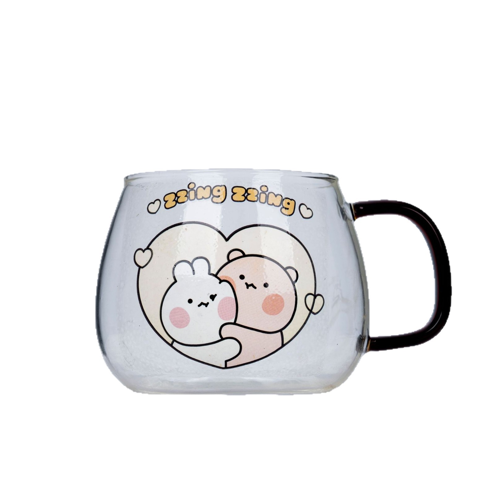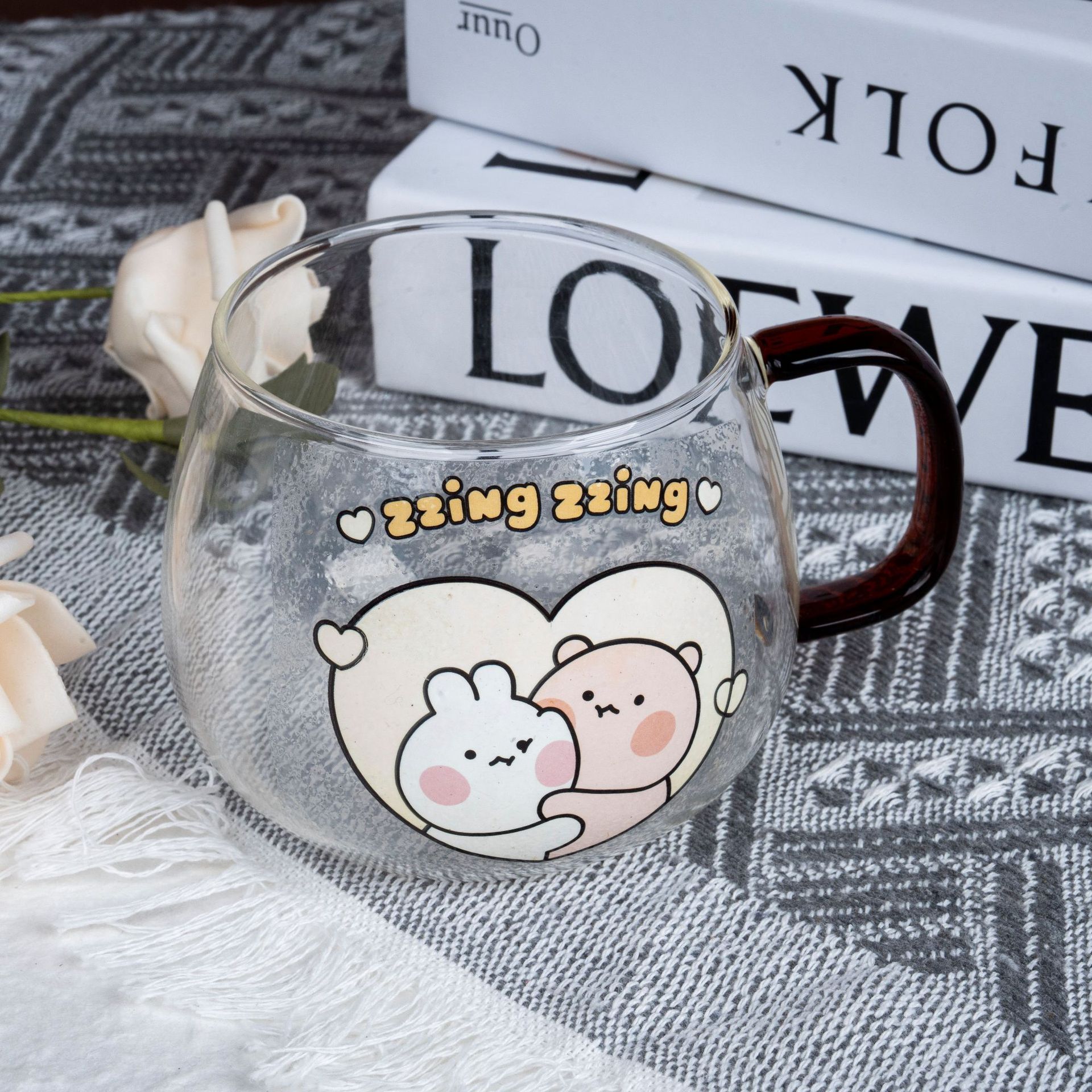 可爱萌系动物玻璃马克杯 卡通兔子小熊爱心水杯 带手柄耐热咖啡杯