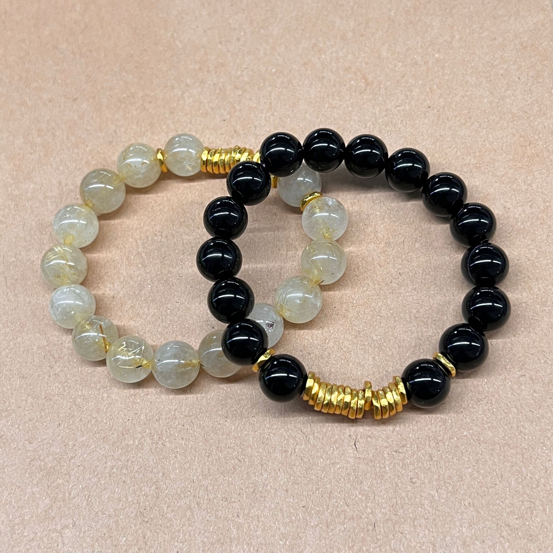 天然金发晶黑曜石古法金盘缠手链男女款简约百搭招财转运情侣手串