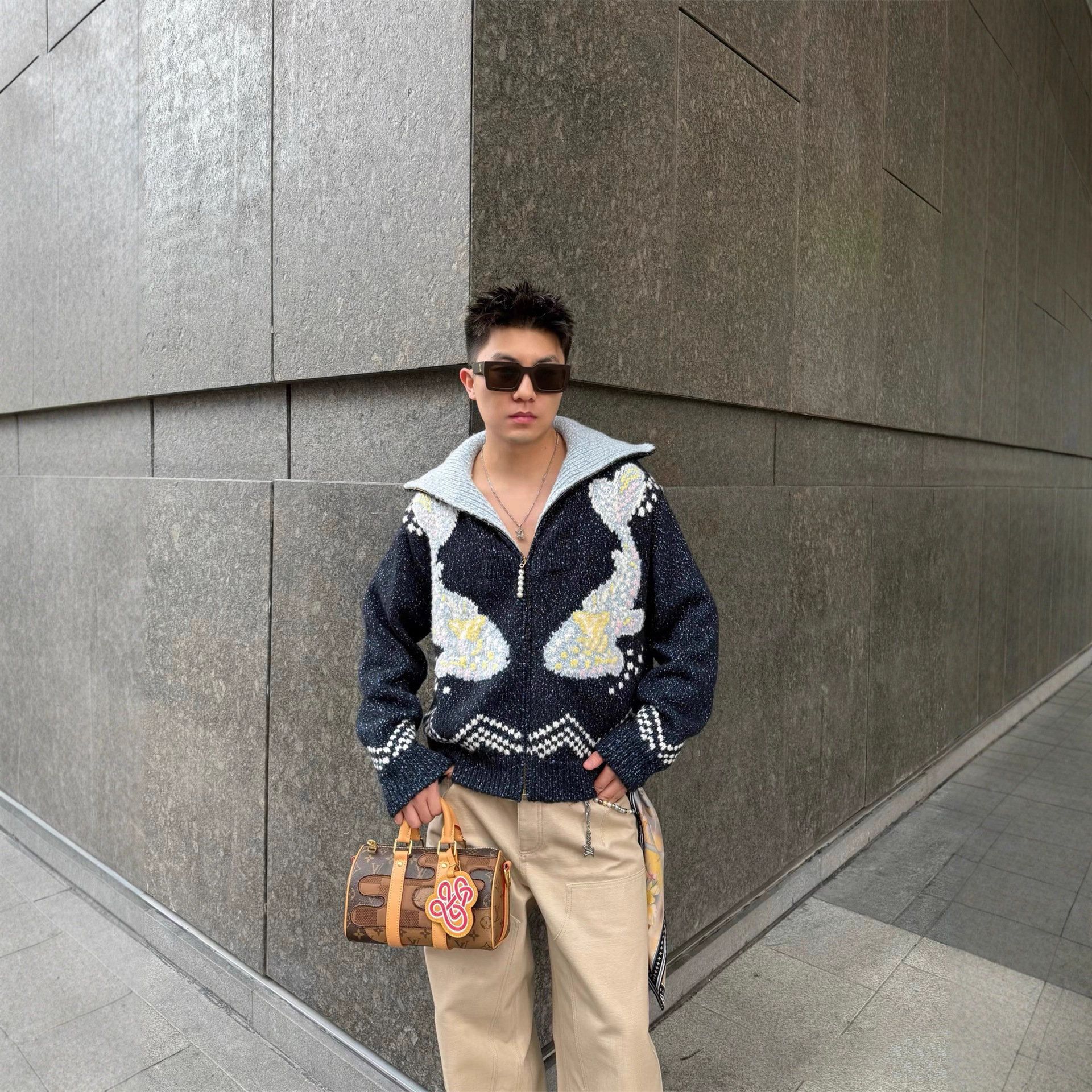 一件代发驴家25新款秋冬双鱼,垂钓提花慵懒保暖针织拉链毛衣外套
