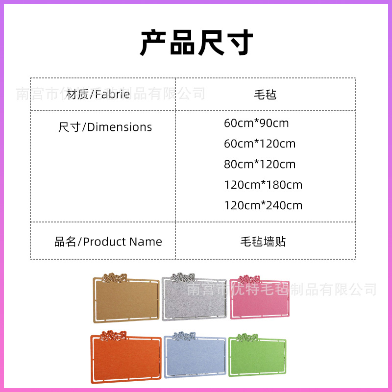 | 规格 | 60*90 | 品名 | 毛毡板 |