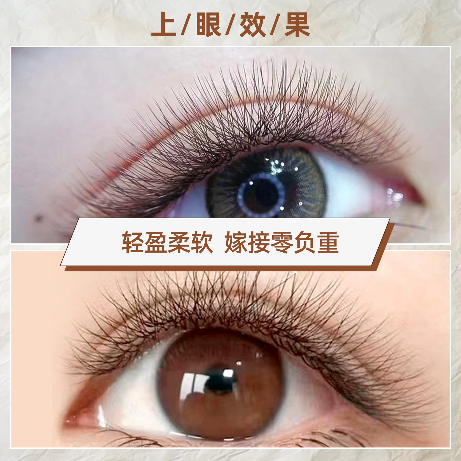 美睫店欧美假睫毛自然浓密睫毛卷翘柔软密排0.05焦糖三叶草嫁接睫