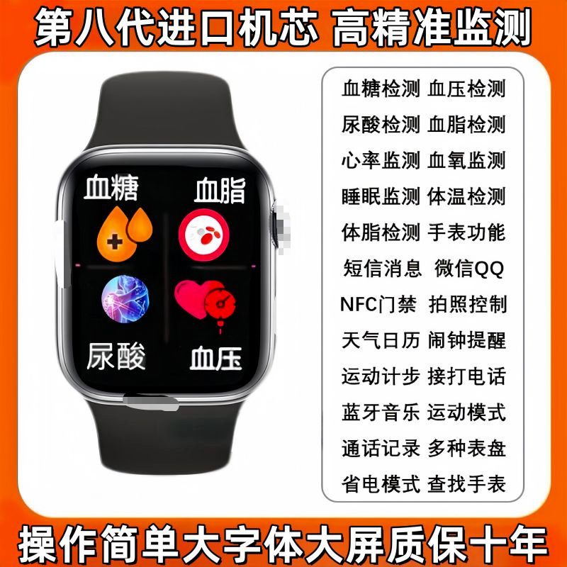 智能手表高精准度血糖手表监测血脂心率血压尿酸新款蓝牙通话手表