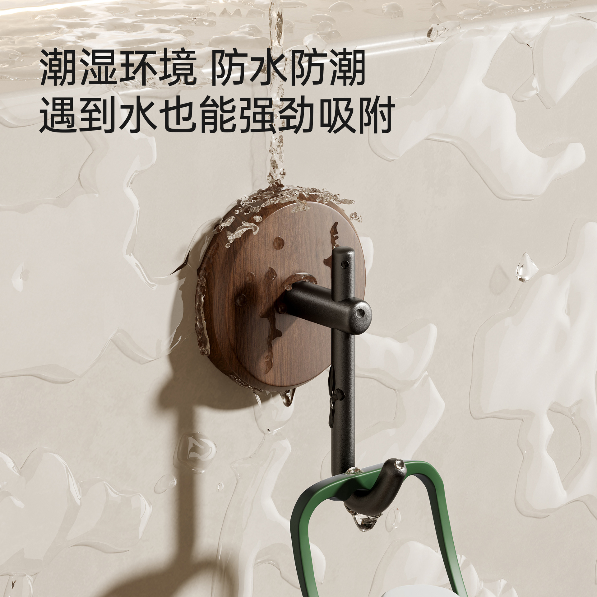 实木胡桃木挂钩玄关门后挂衣钩免钉安装新款免打孔卧室壁饰挂钩