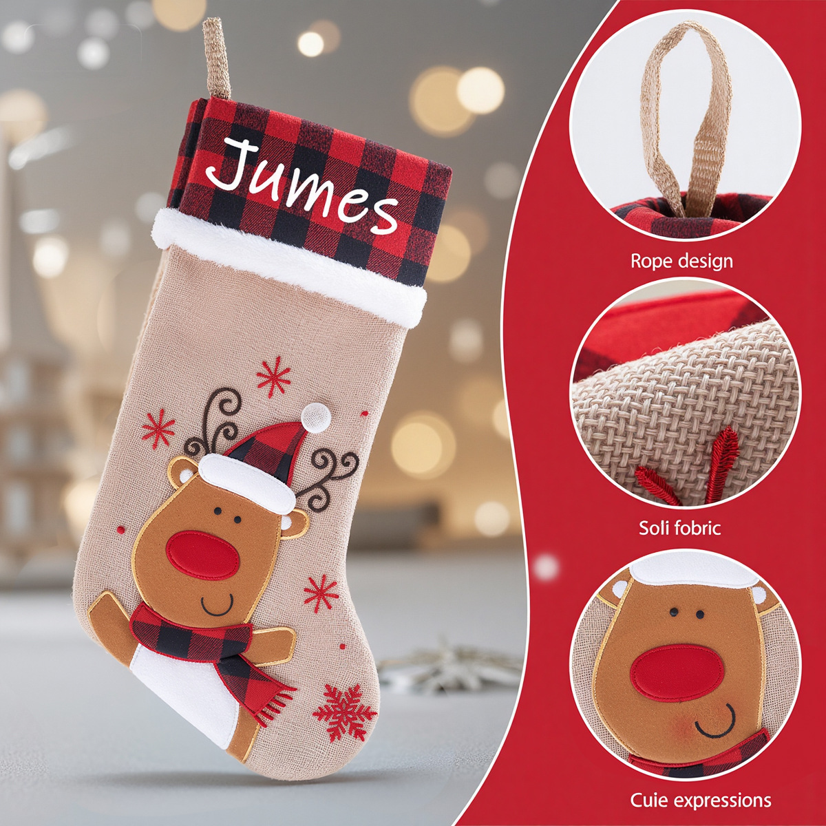 跨境新款圣诞节装饰品绒麻布3D立体卡通圣诞袜圣诞袜子礼物袋批发
