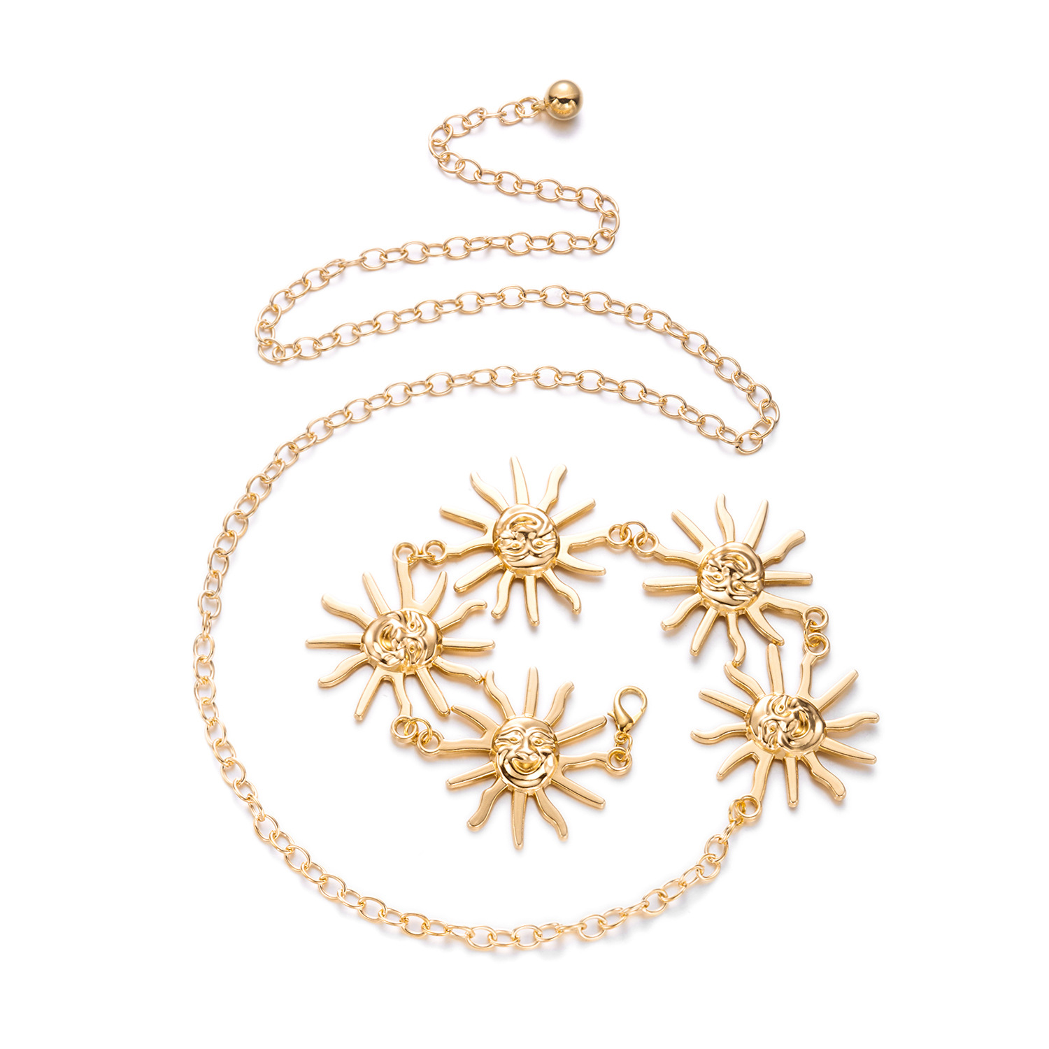 跨境新款腰链女时尚潮流复古椭圆雕花金属链条腰带民族装饰配裙子