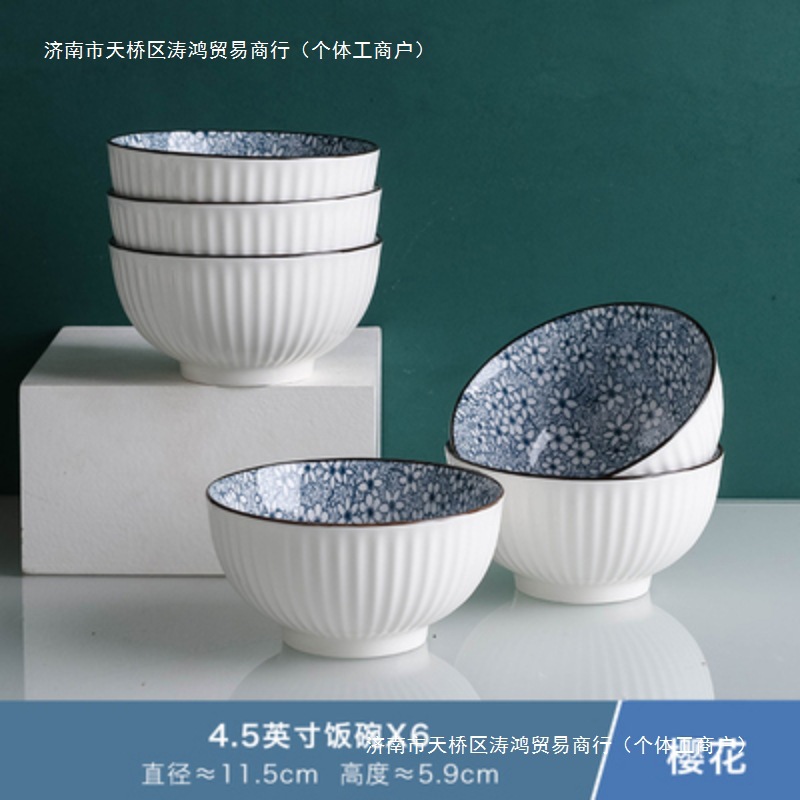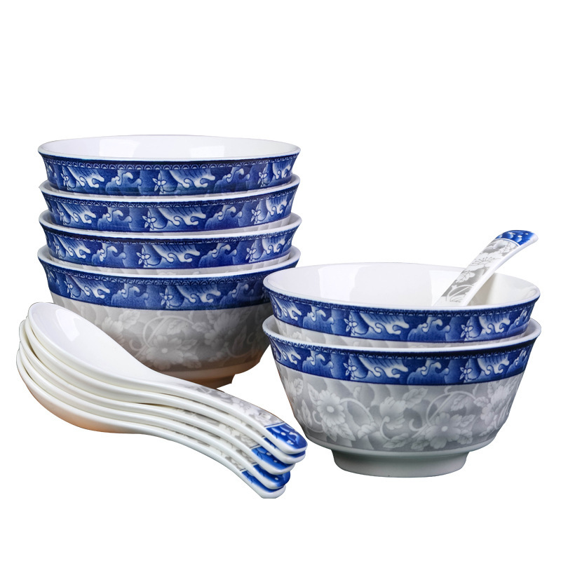 青花瓷饭碗4/6/10只 创意陶瓷饭碗面碗汤碗餐具可微波炉日式泉熔