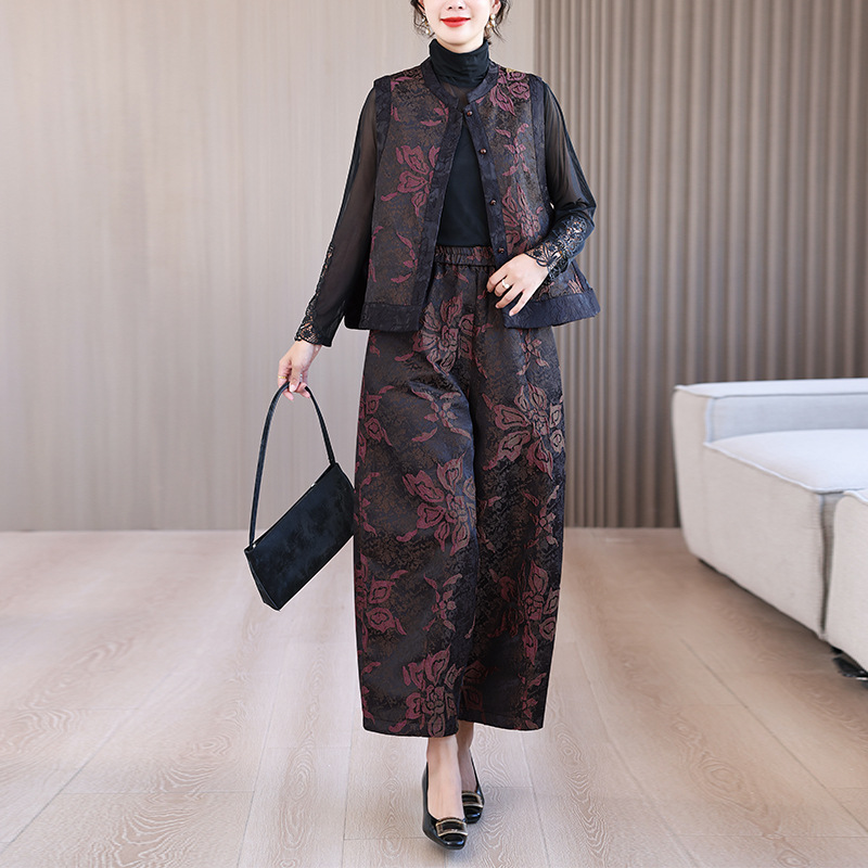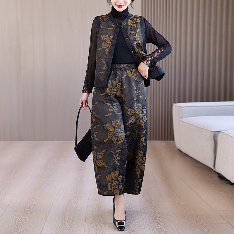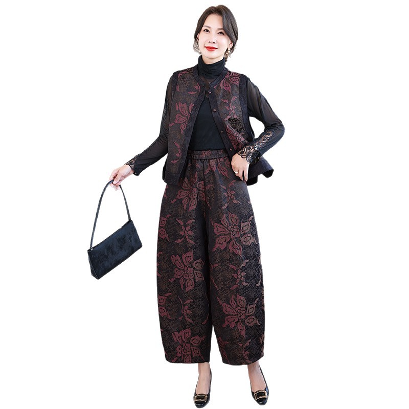欧洲站2025秋季新款休闲百搭花苞阔腿裤女时尚洋气马甲两件套