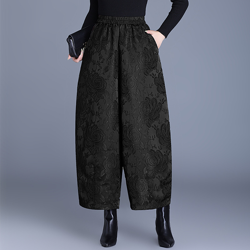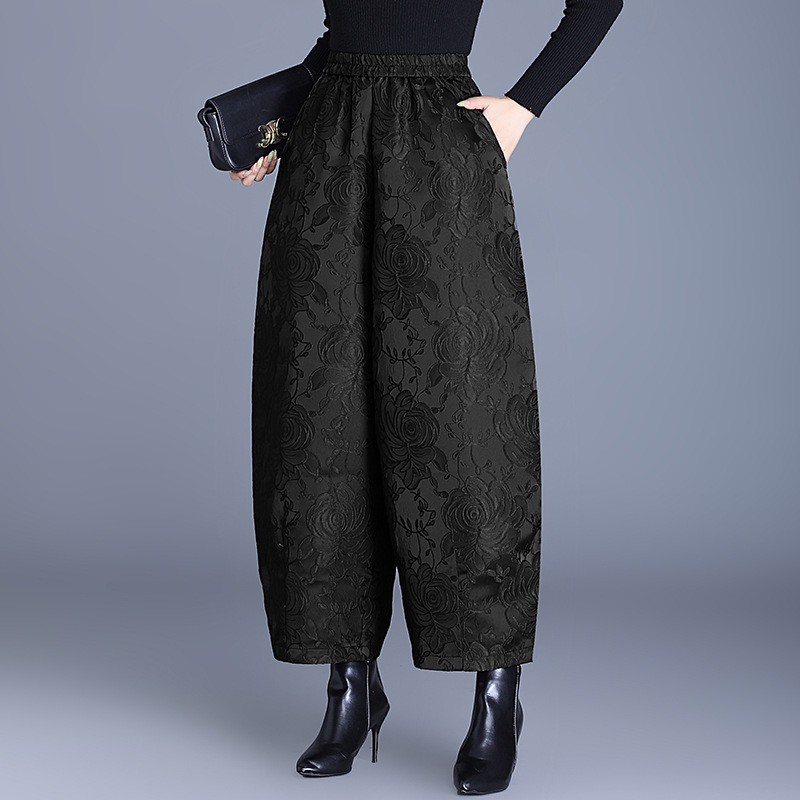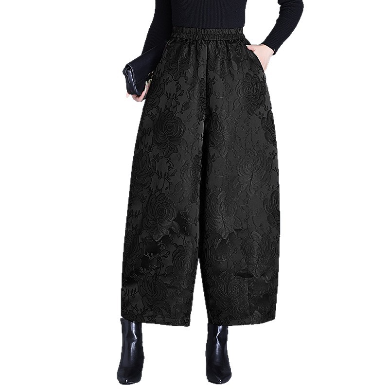 新中式浮雕款千层玫瑰显瘦重磅提花花苞裤大码宽松阔腿裤棉裤