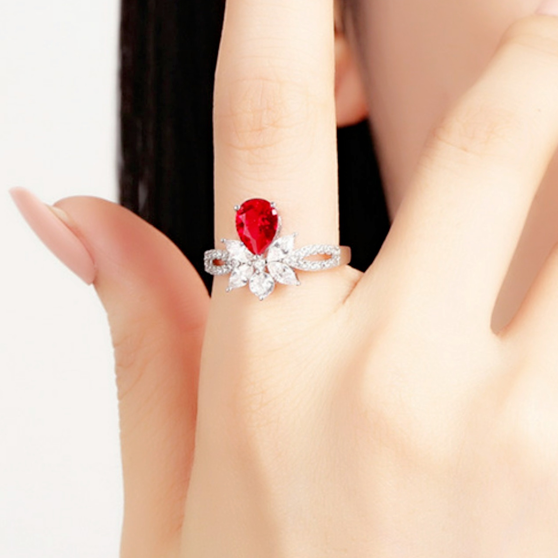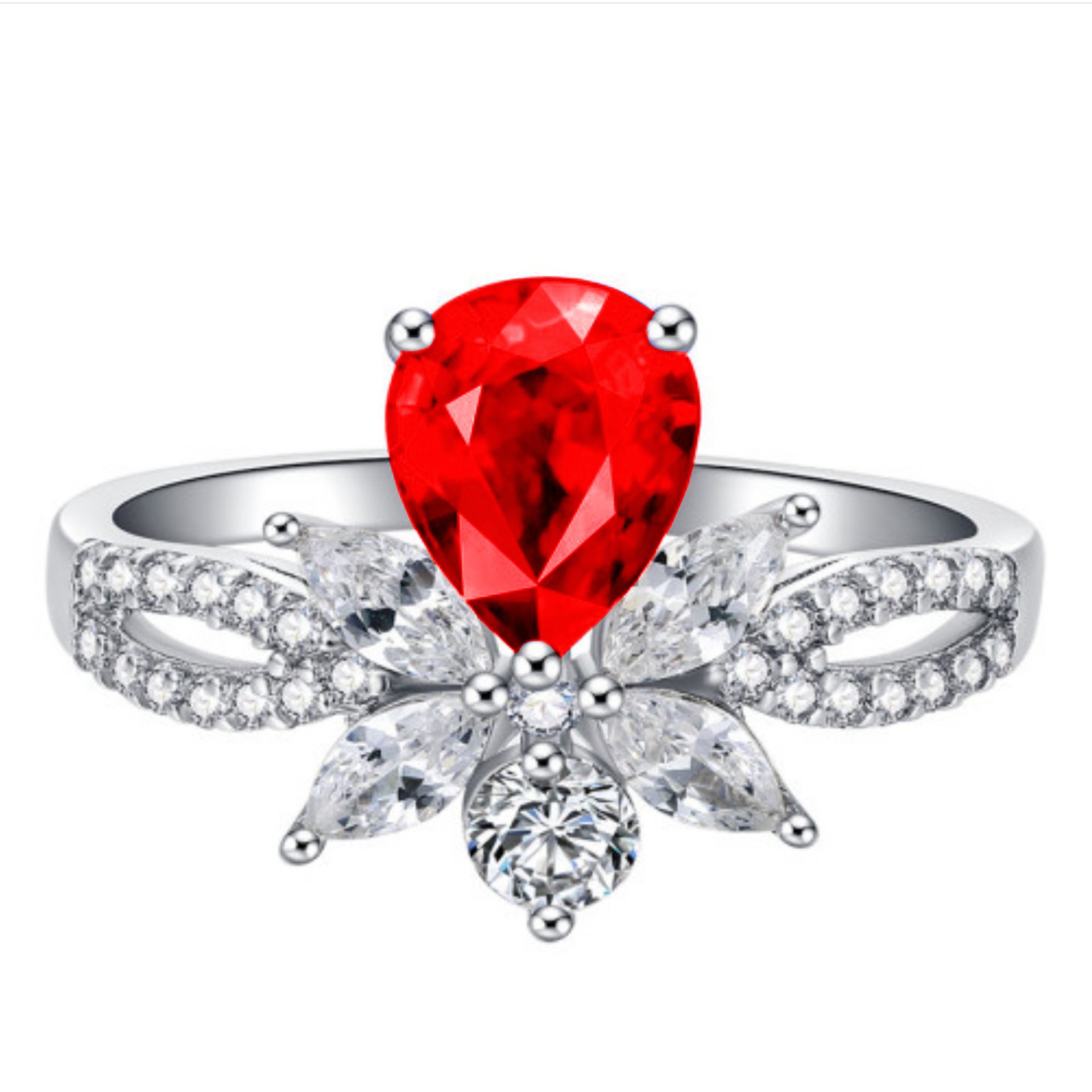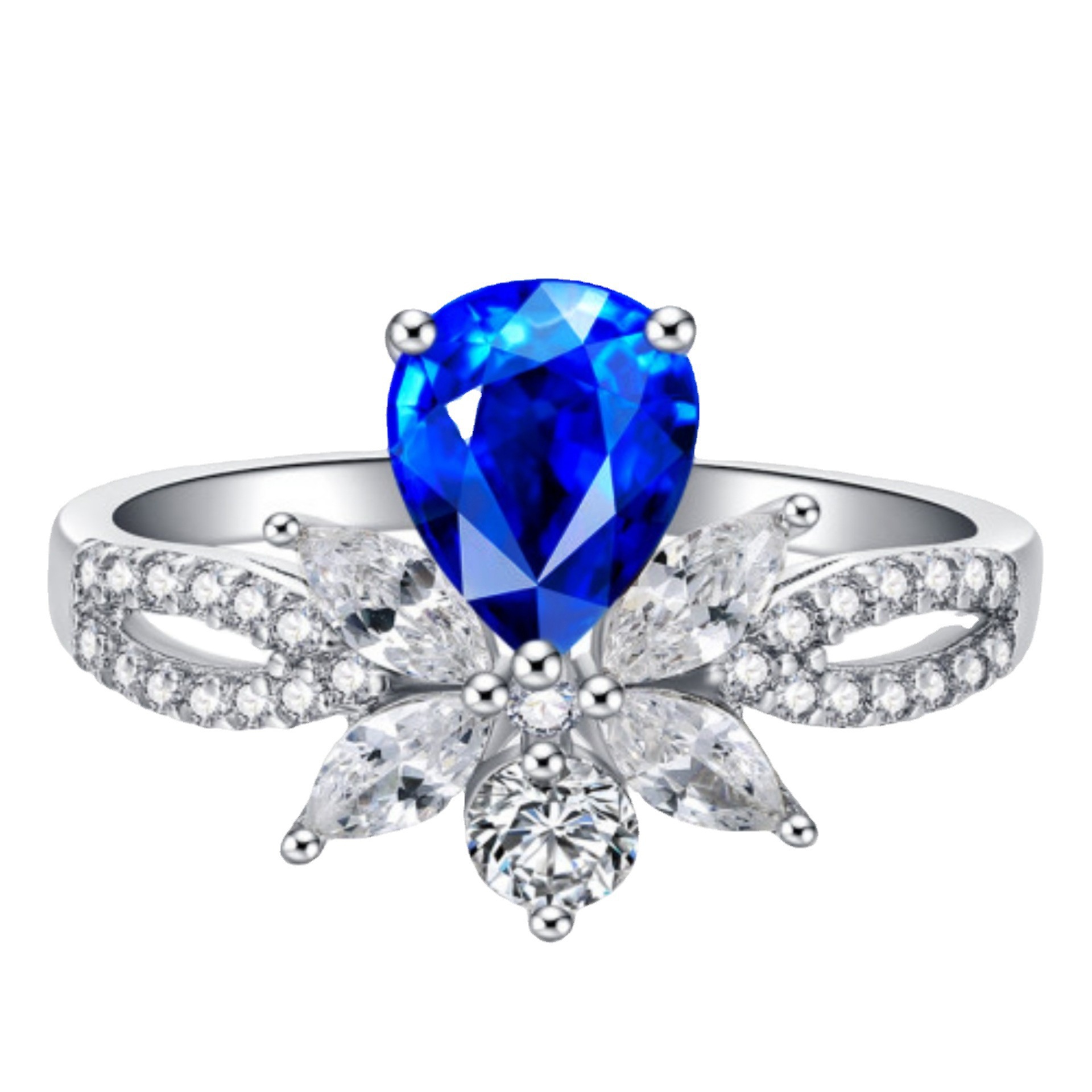 凯恒气质开口红蓝宝石戒指时尚气质皇冠彩宝坦桑石彩钻锆石戒指环