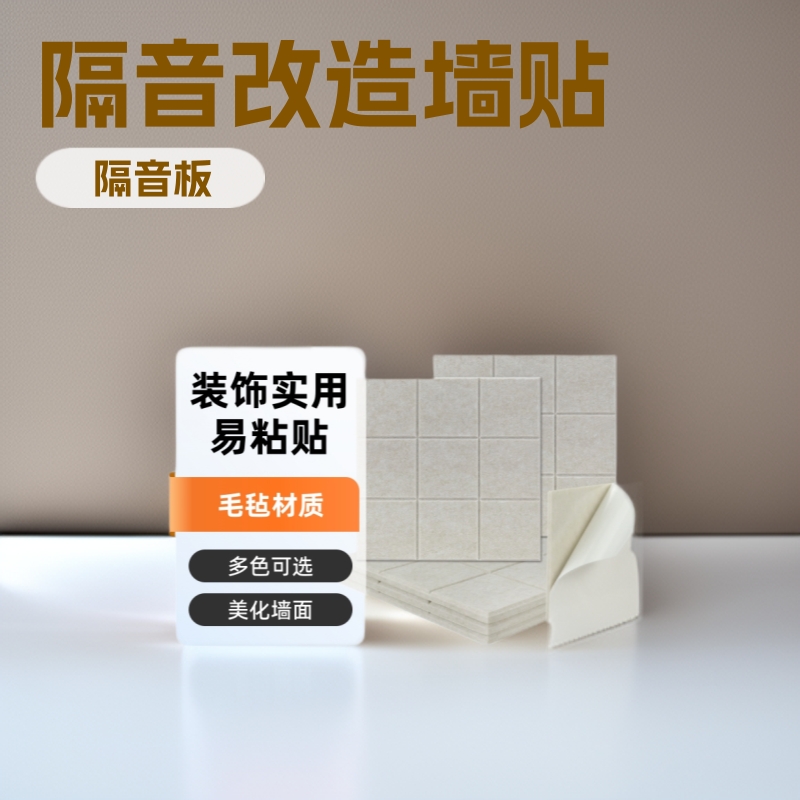 聚酯纤维隔音板9mm方形背胶毛毡板白墙改造吸音板自粘背景照片墙
