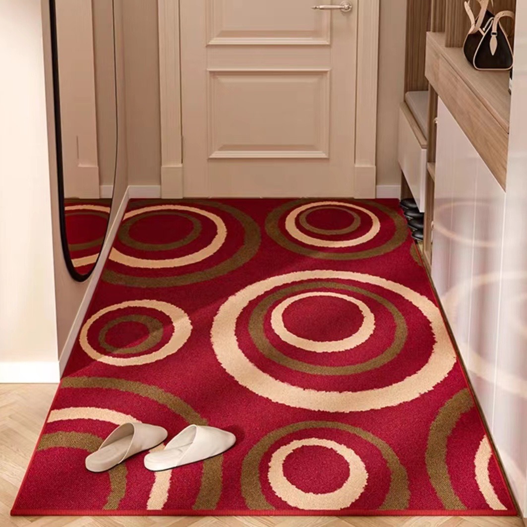 新款红色大花圈绒家用地毯入户们地垫玄关进户门脚垫耐脏耐磨防滑
