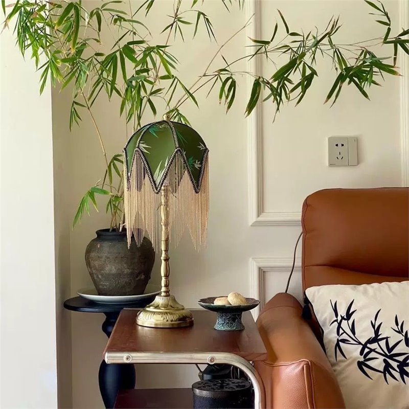 复古美式复古卧室流苏田园台灯欧式床头氛围轻奢客厅灯