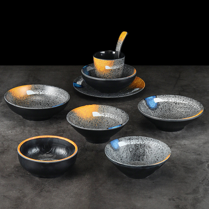 密胺火锅店摆台四件套日式餐具仿瓷塑料烤肉餐厅碗碟杯勺套装商用