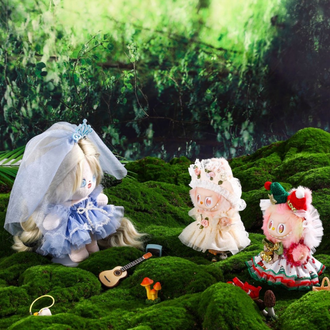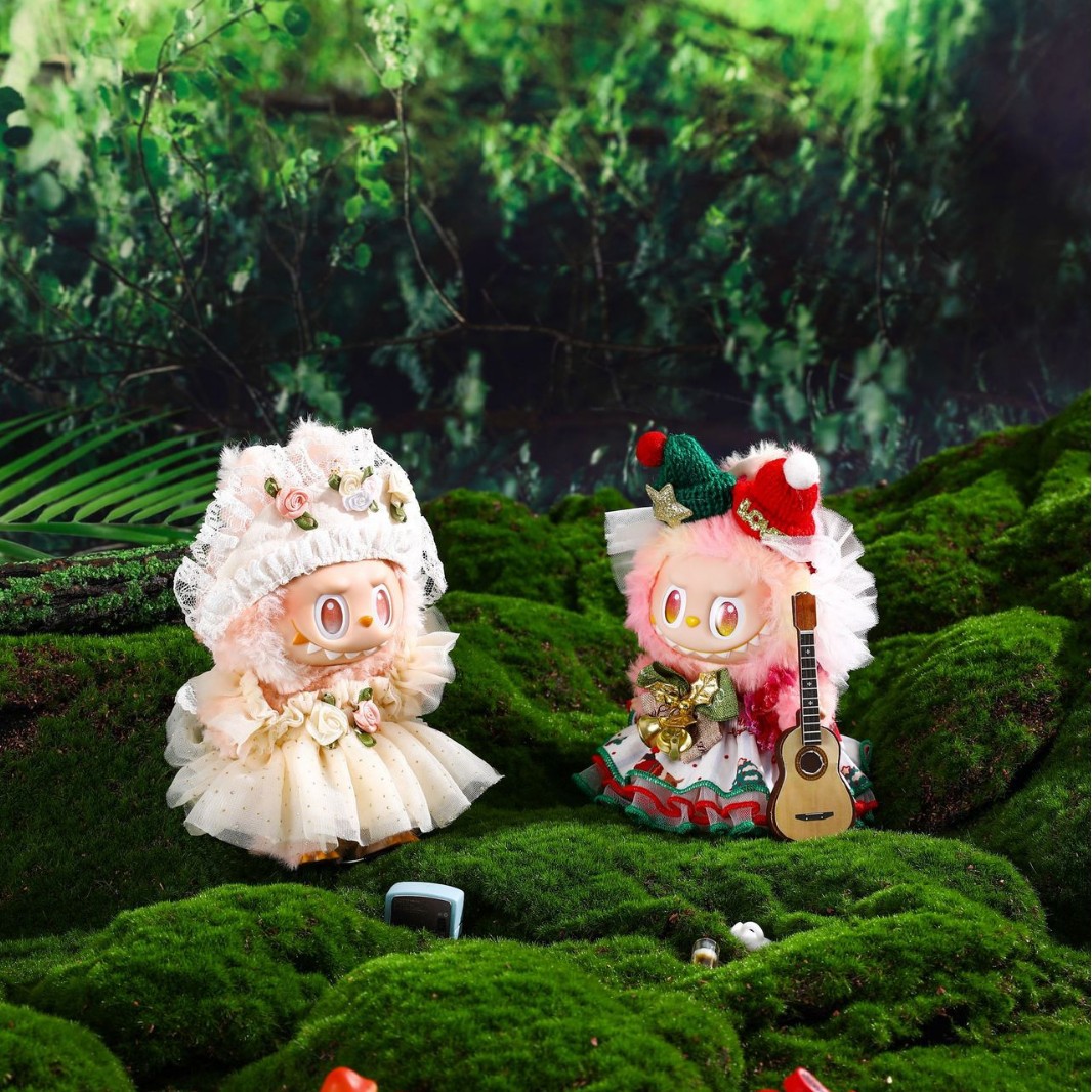 labubu娃衣拉布布衣服一二三代坐站姿珍珠缎面婚纱裙玫瑰花纱纱裙