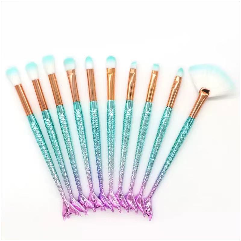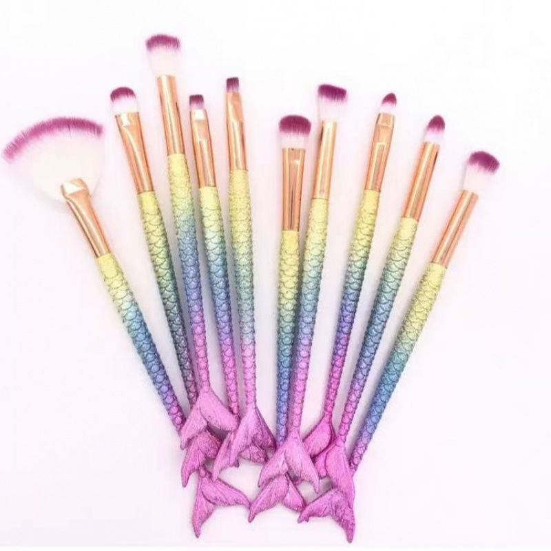 跨境10支渐变美人鱼化妆刷紫色单支opp袋装手柄刷化妆刷美妆工具