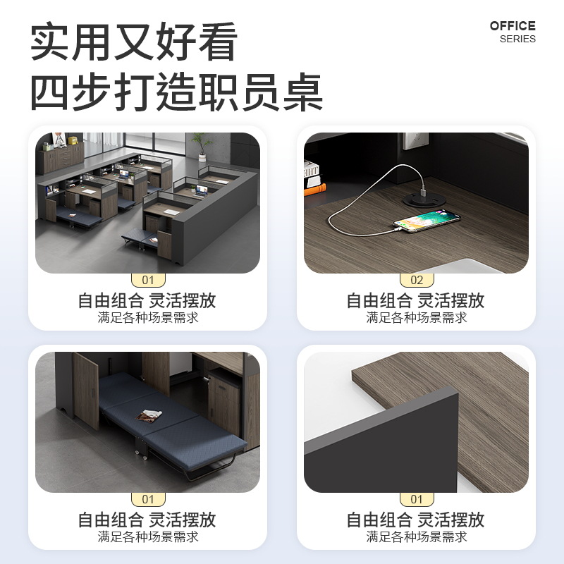 颜色 | 干字型六人位+活动柜+椅子【带折叠床】 | 油漆 | 免漆板 |