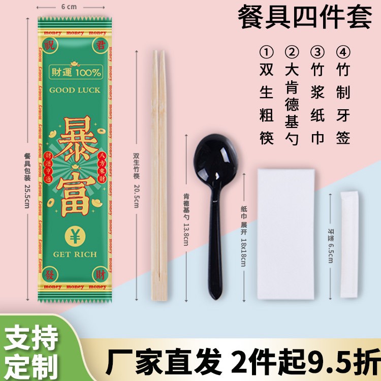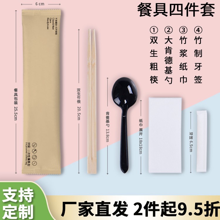 高档一次性筷子四件套独立包装外卖商用饭店餐厅餐具logo批发