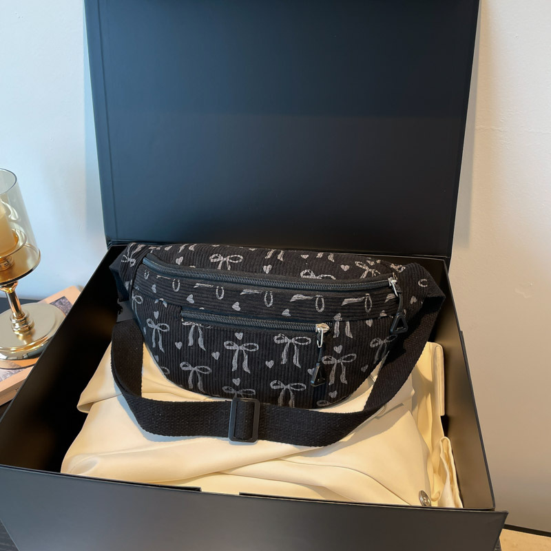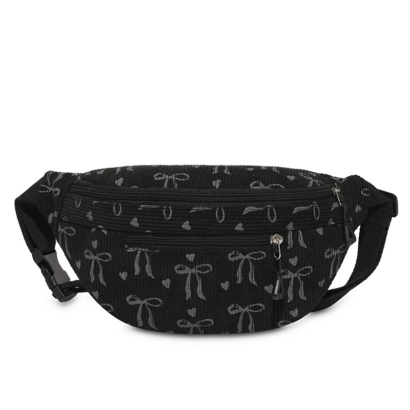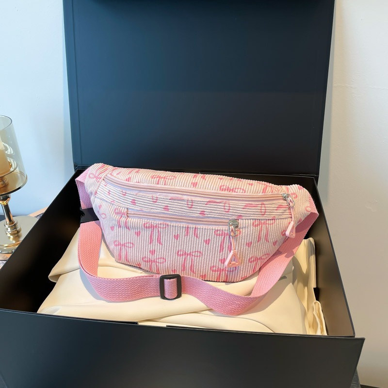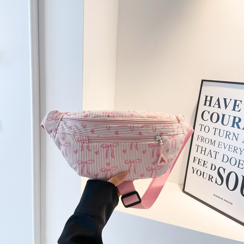 亚马逊爱心蝴蝶结胸包女潮大容量灯芯绒拉链轻便斜挎包多功能腰包