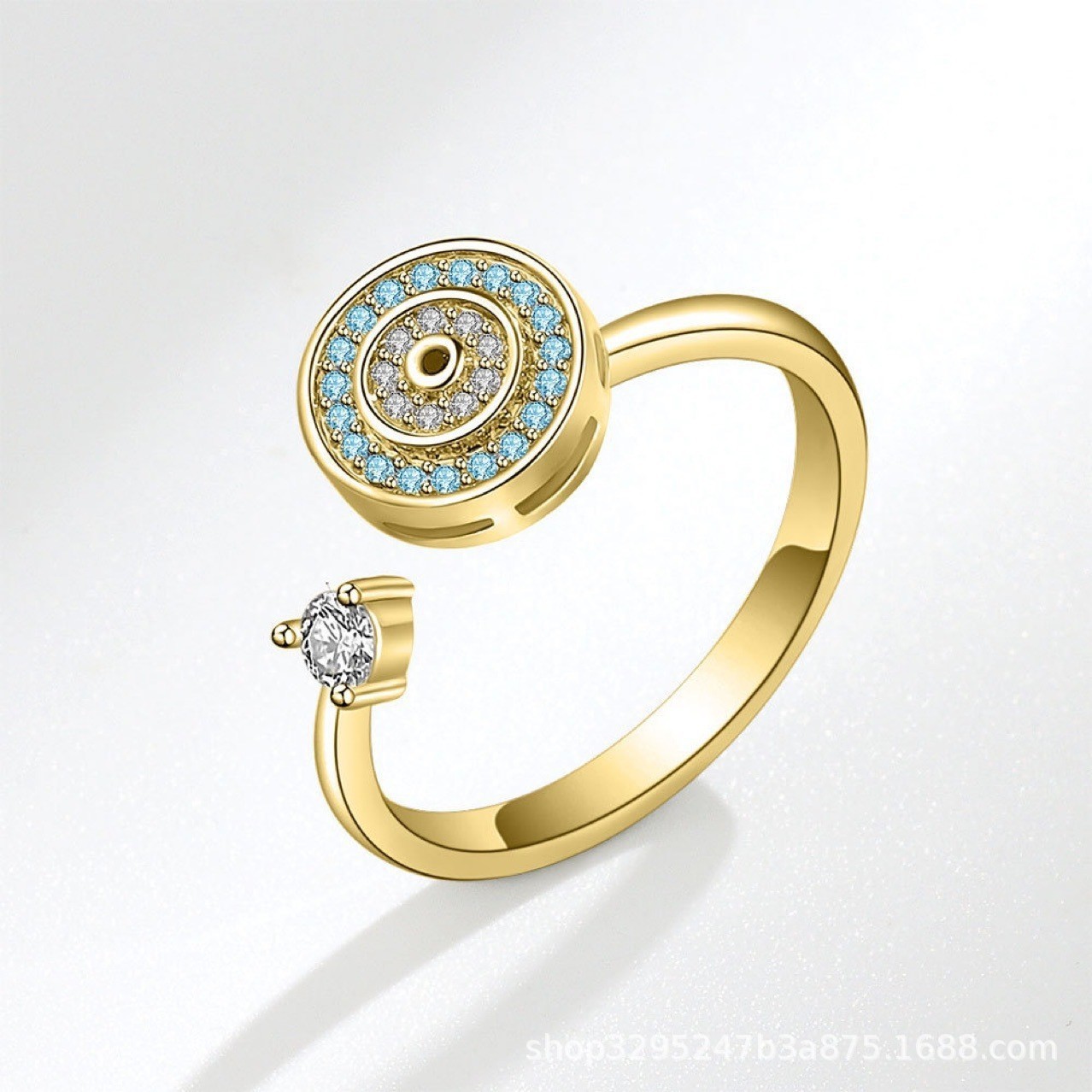 恶魔之眼旋转戒指时尚男女开口可调节指环欧美创意潮跨境饰品