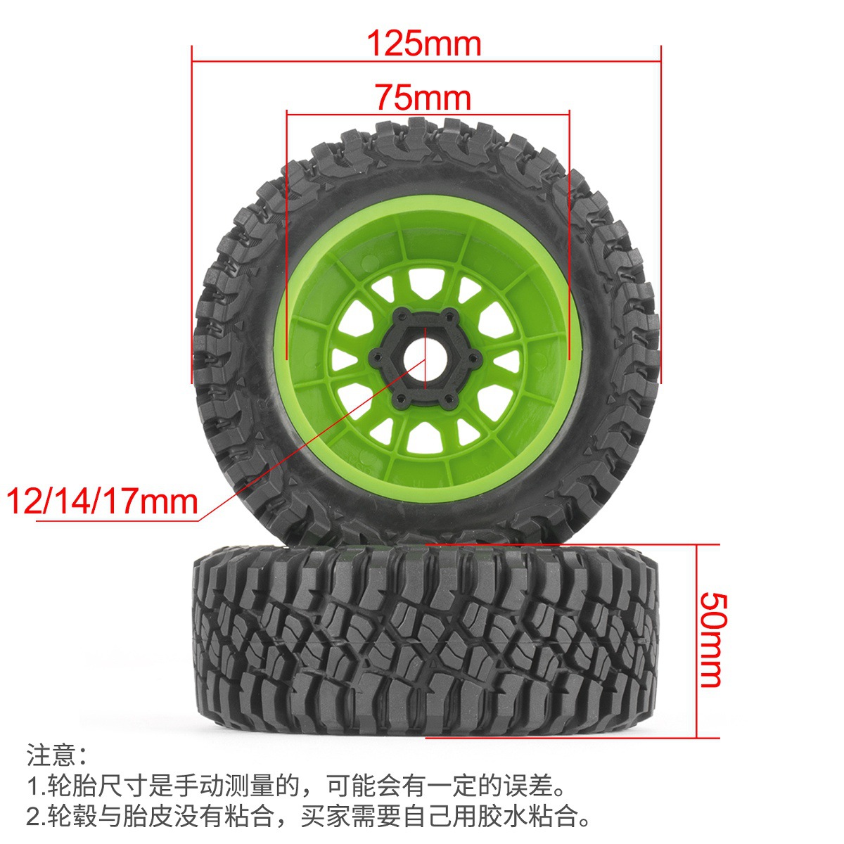 PYFORE遥控模型车1/7 1/8短卡轮胎直径125mm MOJAVE莫哈维 W248