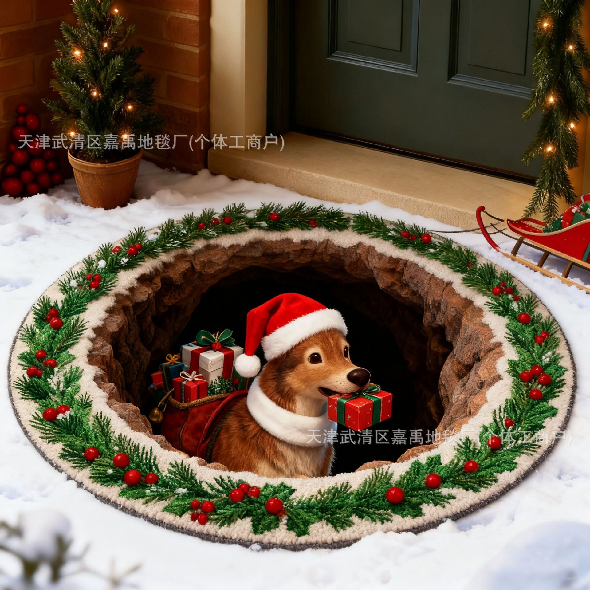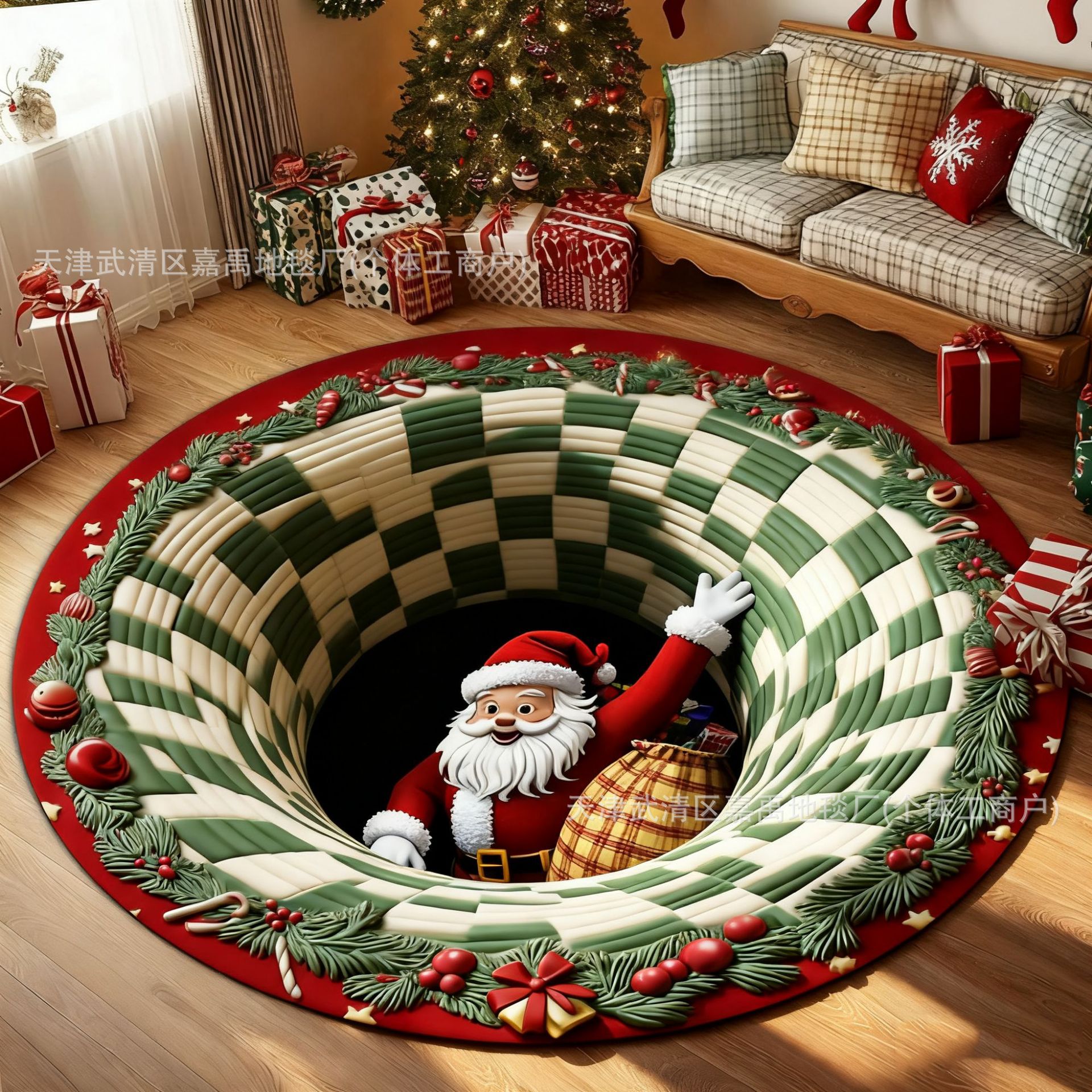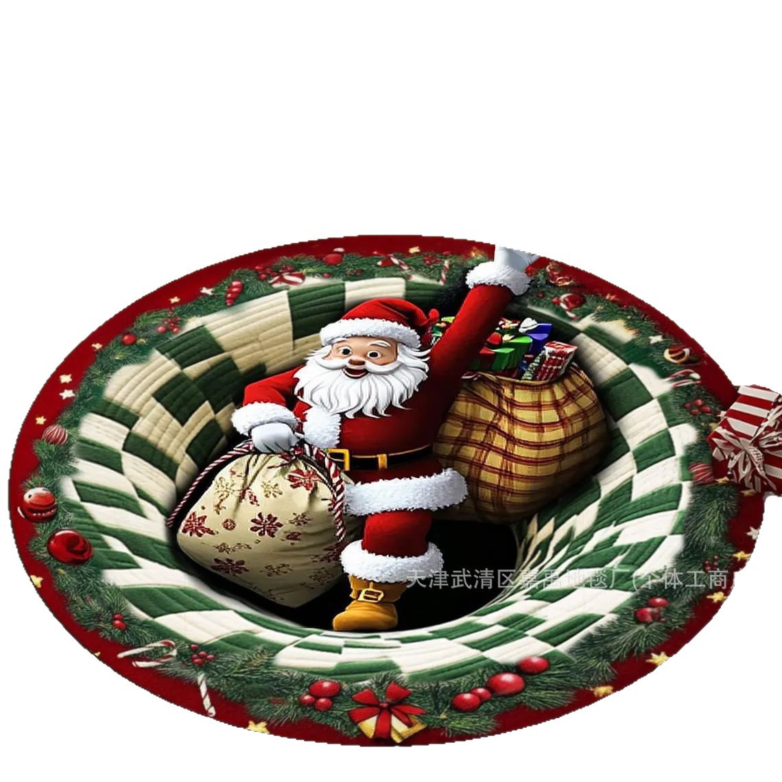 跨境热销3D视觉圆形圣诞客厅摇椅毯隔凉易打理沙发毯代发冬季地毯