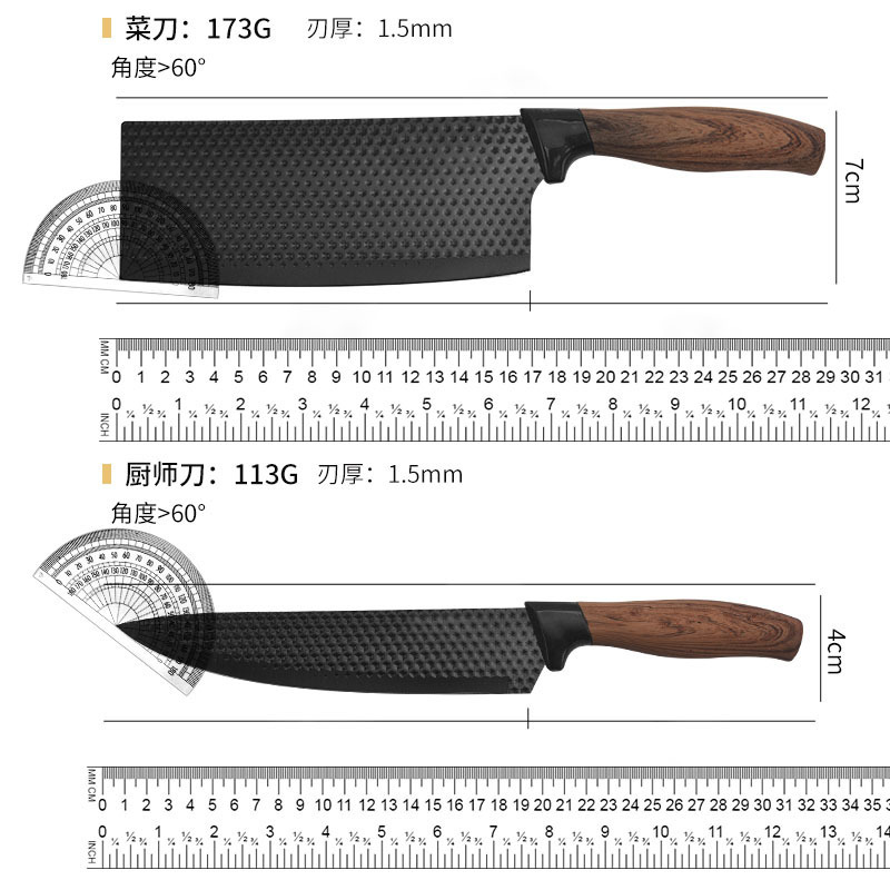 工厂跨境外贸电商现货批发带菜刀肥仔柄披覆六件套不锈钢厨房刀具