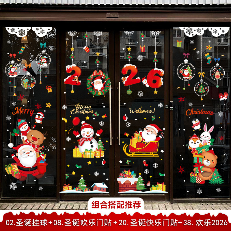 颜色 | 52.圣诞老人小伙伴【静电免胶】【双面同色】 | | 颜色 | 08.圣诞欢乐门贴【静电免胶】【双面同色】 |