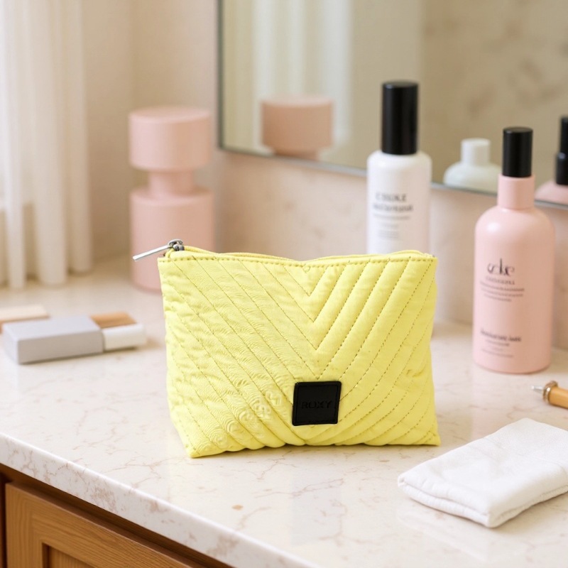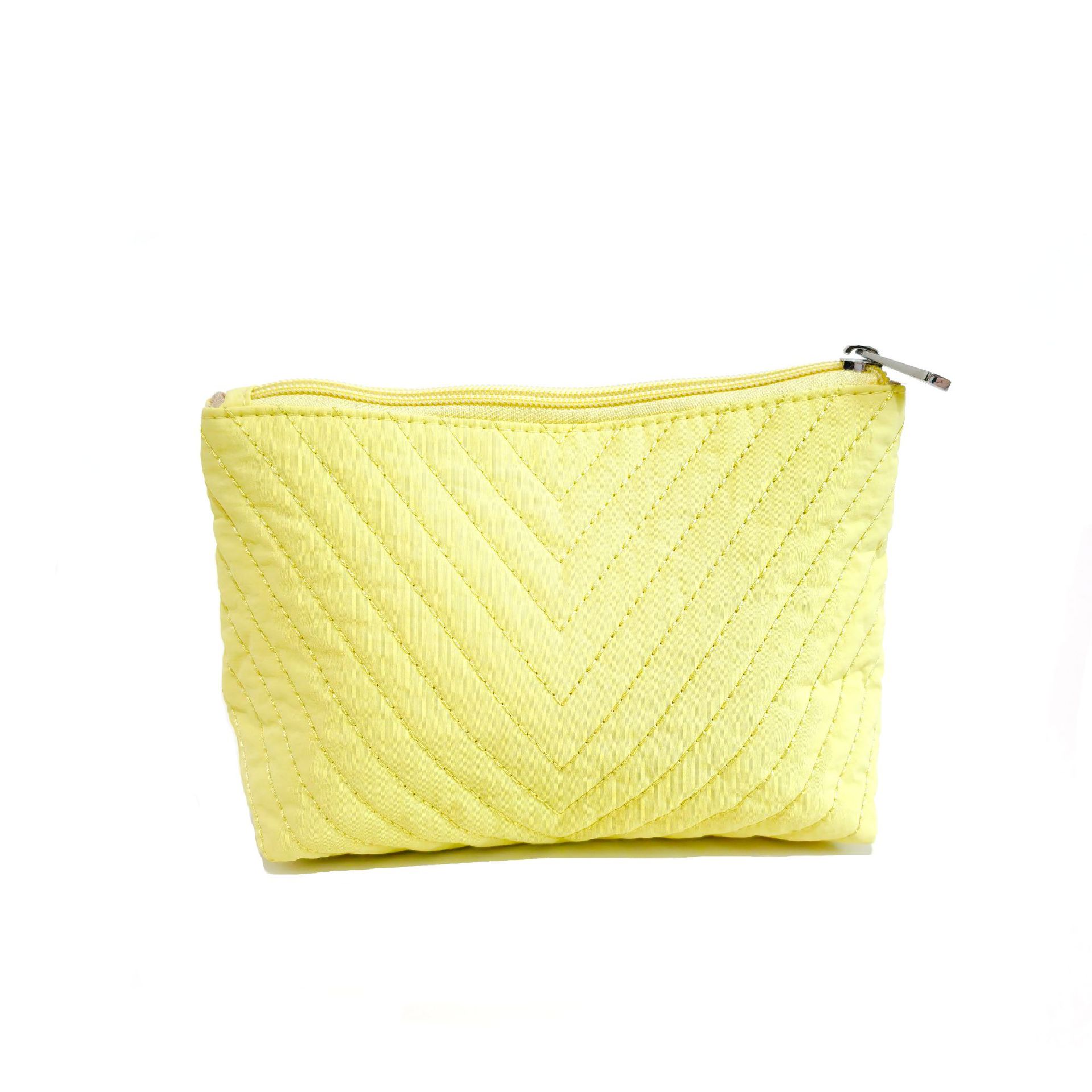 定制淡黄色绗缝化妆包 人字形纹路时尚美妆收纳包 日常便携整理包