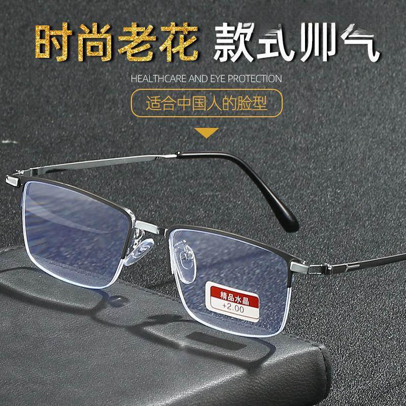 纯钛框名牌老花镜水晶石男女款特级中老年高清高档老花眼镜防蓝光