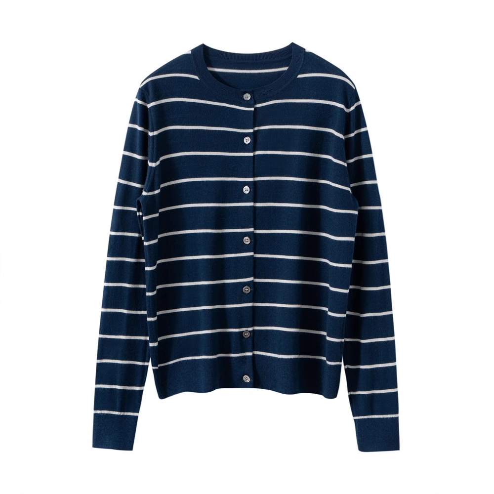 批发2025秋冬新款针织开衫女宽松显瘦上衣外套简约百搭撞色条纹纯